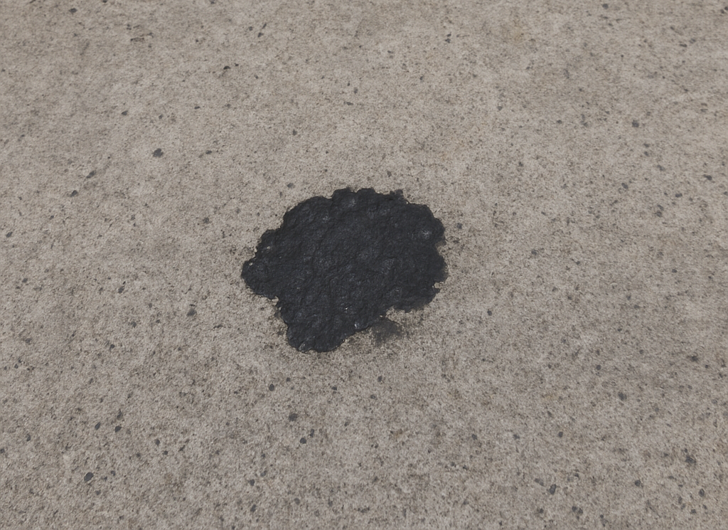 じんわり広がる黒いシミは、車から漏れたエンジンオイルやガソリン、冷却水の可能性も。放っておくとコンクリートにしっかり染み込み、落ちにくくなります。