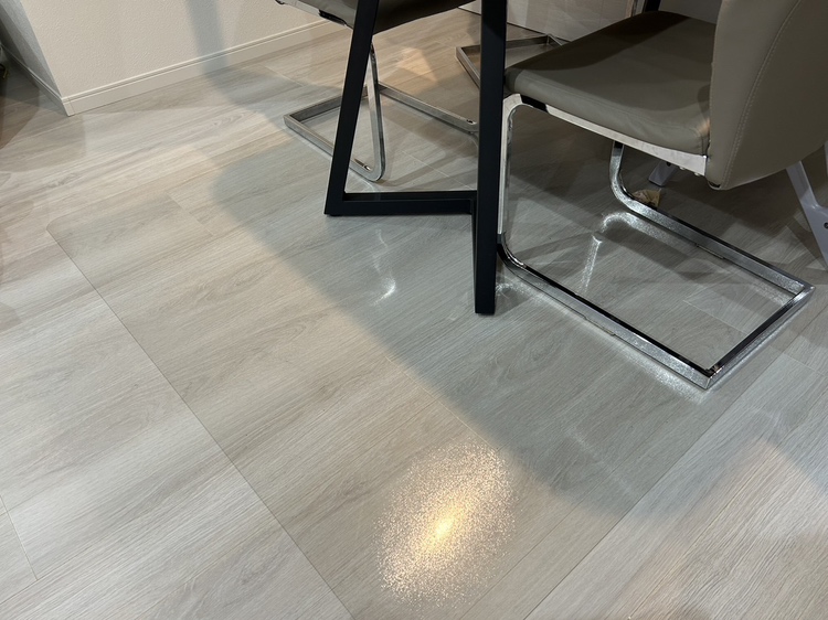 予防策としては、椅子を購入したらすぐに椅子の脚を保護することが有効となります。例えば粘着式のフェルトやソックスタイプの脚カバーをつければ、椅子の滑りを保ちながらフローリングには傷がつきません。また、最近では、ダイニングセットの下に透明のチェアマットを敷く方が増えています。