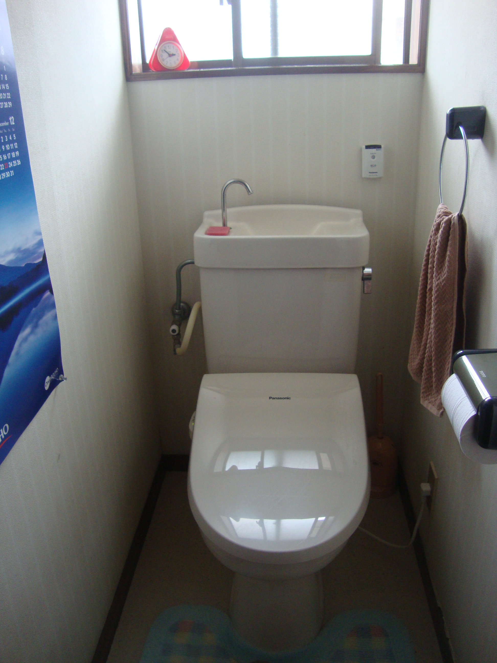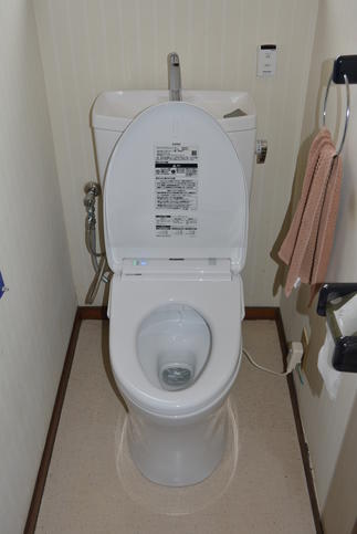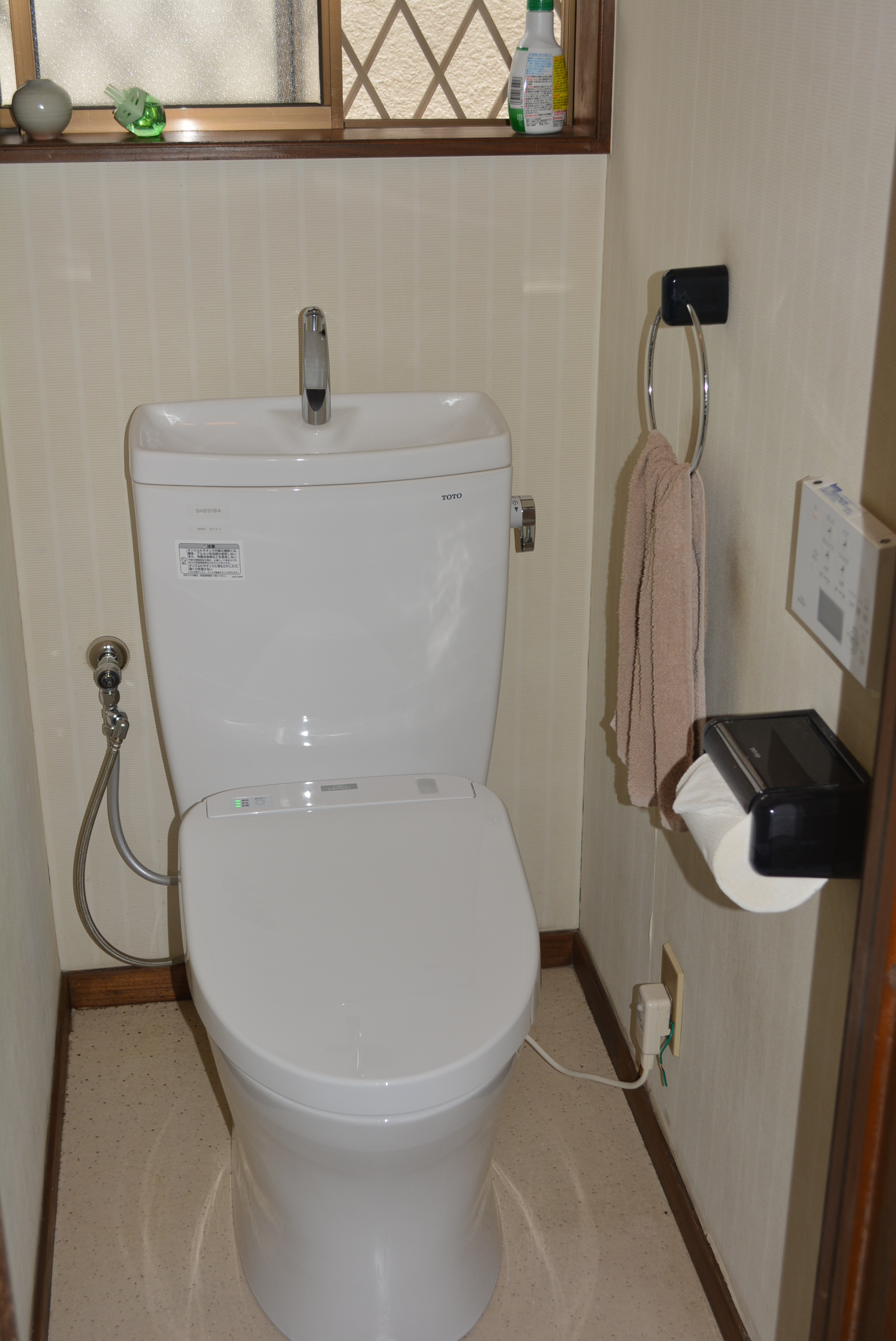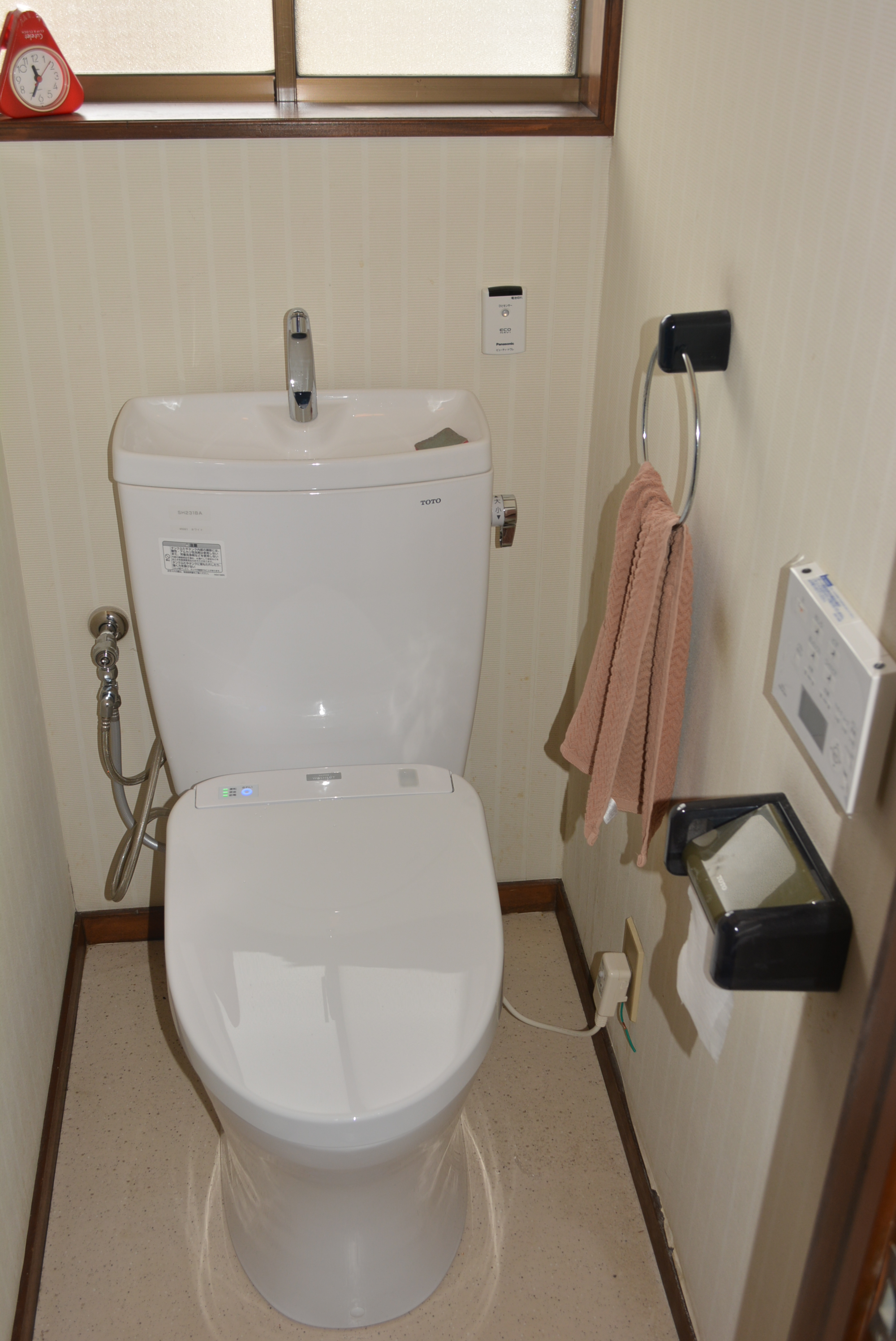 一体型のトイレではなく、今後ウォシュレットなどが壊れた場合に部分的に交換できるようにとタンク・便器・ウォシュレットの個々の新しいおトイレにしました。