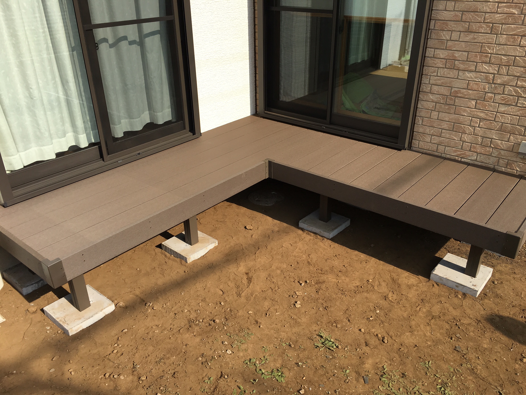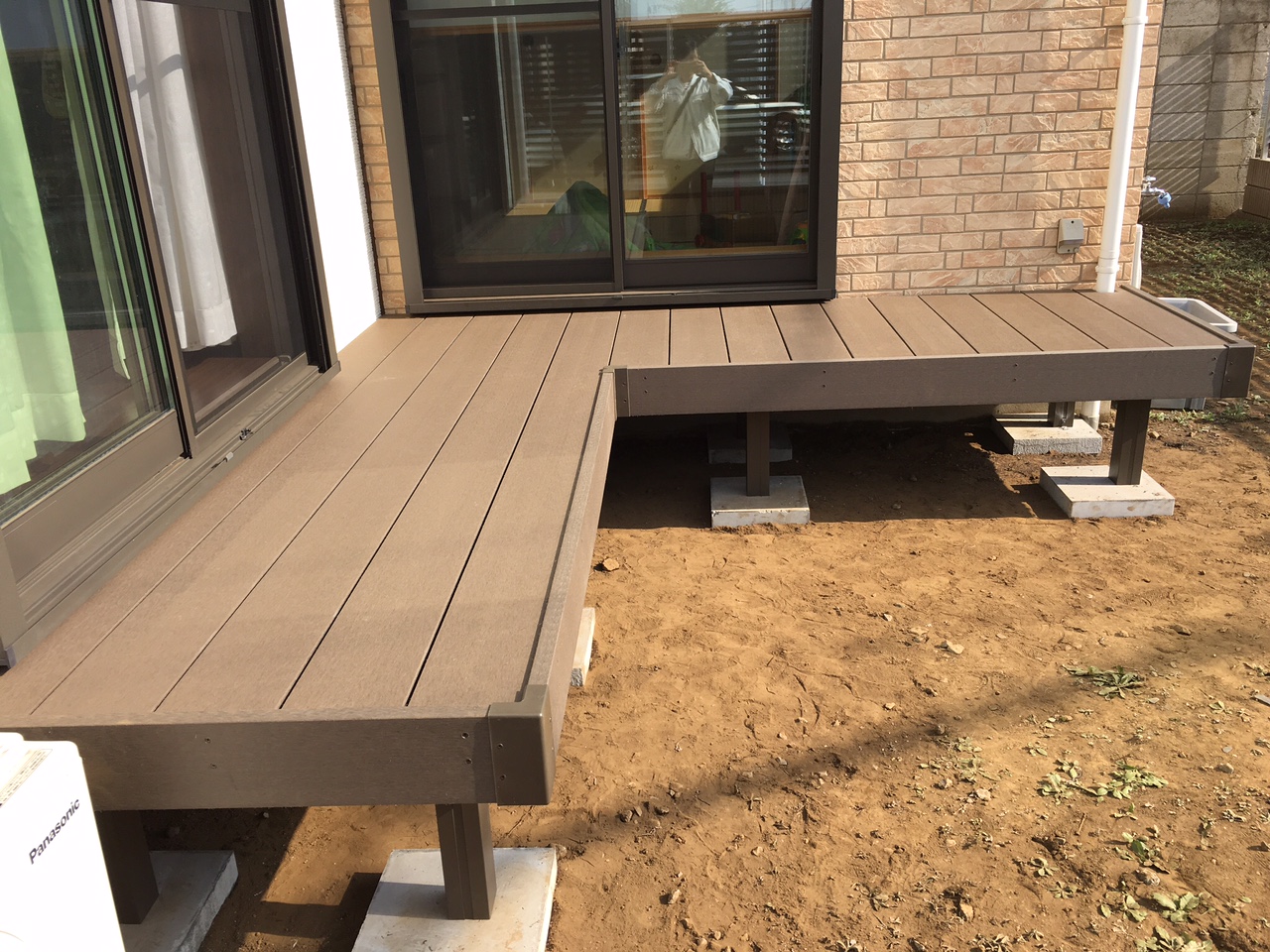 当初はお施主様がウッドデッキ工事を行う予定でしたが、ご相談させて頂き結果任せて頂きました。 お色も合っていて良かったです。