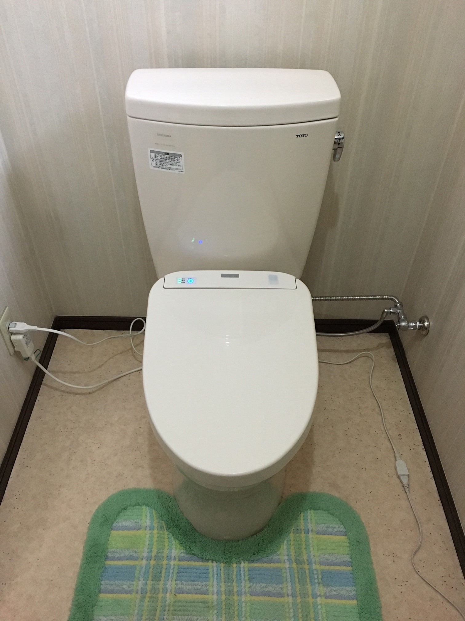 TOTOのトイレ交換です。便座はリモコンと自動開閉で、簡単に閉められます!