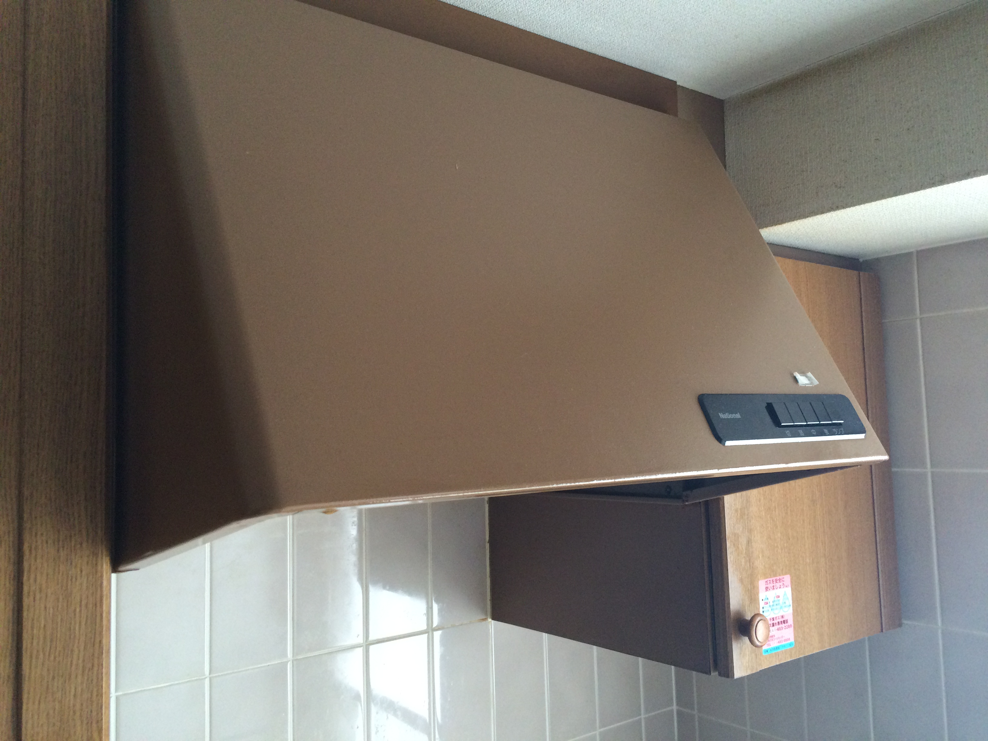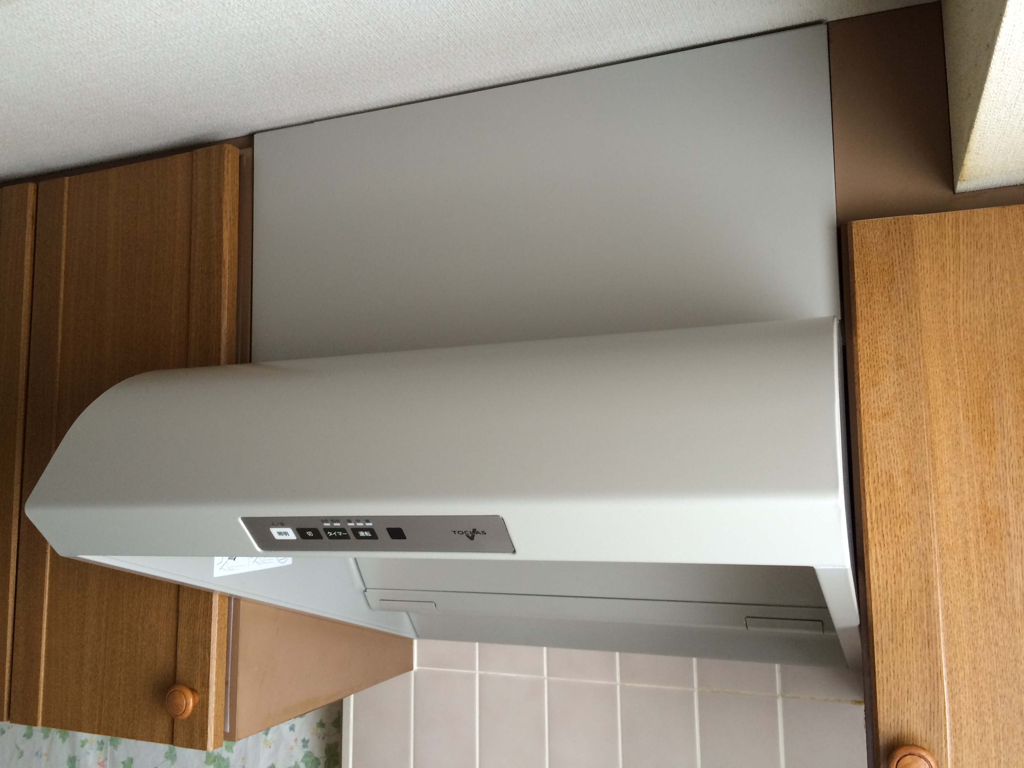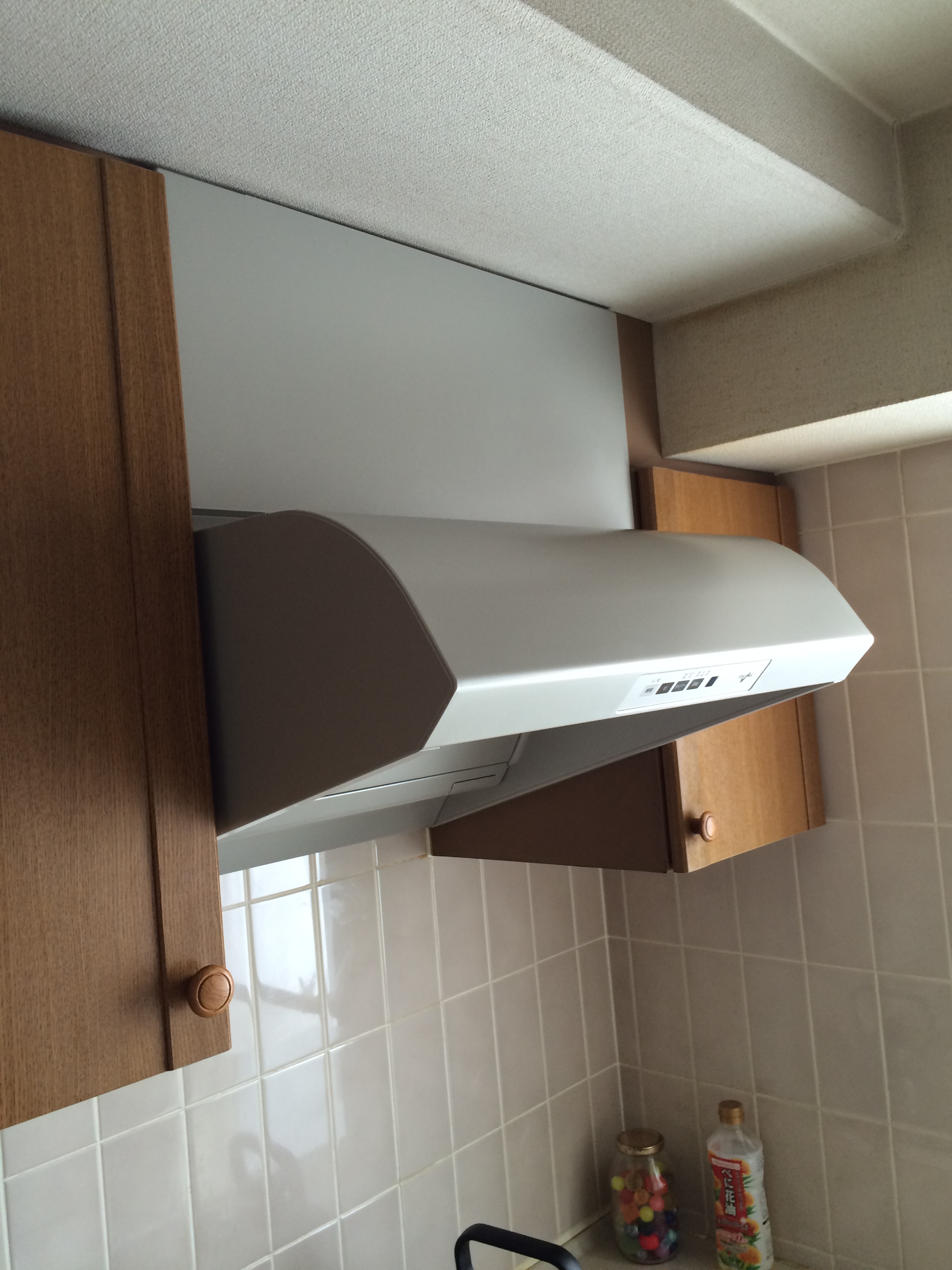 トクラスのレンジフードを付けました。気流を利用した商品で、お掃除も以前のレンジフードより楽に出来ます。