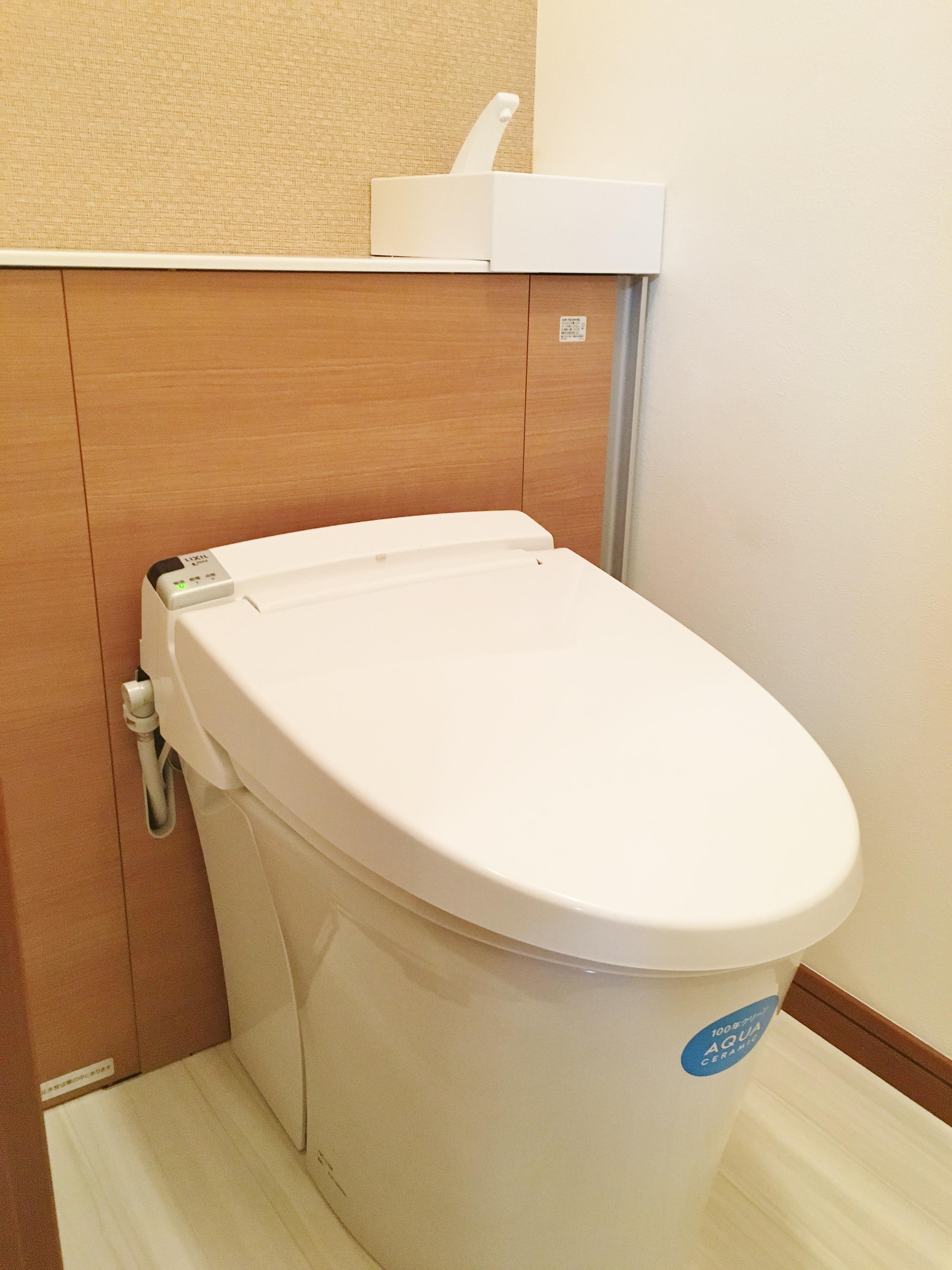 収納スペースができたので、トイレがスッキリ。小さな手洗いもあるのが嬉しいポイントです。クロスやフロアも張替え、空間が生まれ変わりました