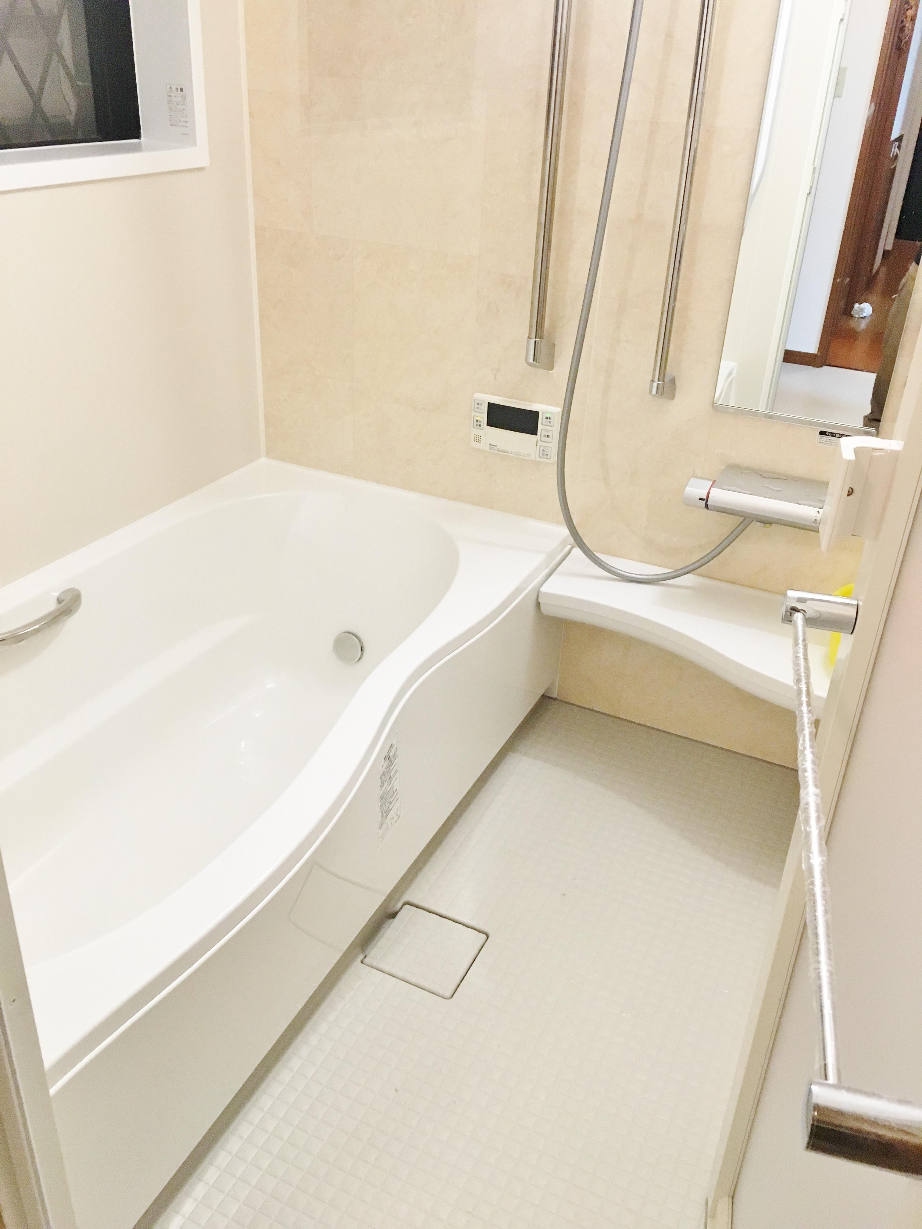 汚れが目立ってきた浴室をリフォーム。お掃除のしやすさだけではなく、ダブル保温構造の浴槽&保温蓋で温度の低下を防ぎます。