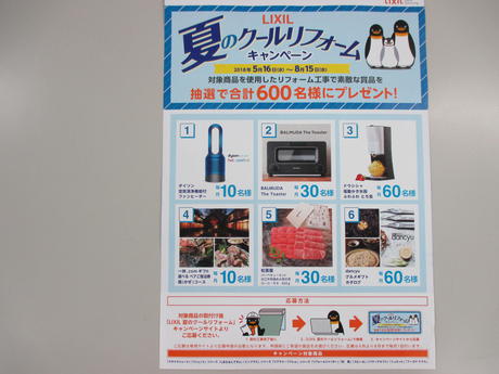2018年5月16日から8月15日までにキャンぺーン対象商品使用したリフォーム工事をして頂いた