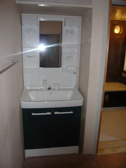 LIXIL Kireiyu の浴室改装工事です。一緒に洗面台も設置しました。
