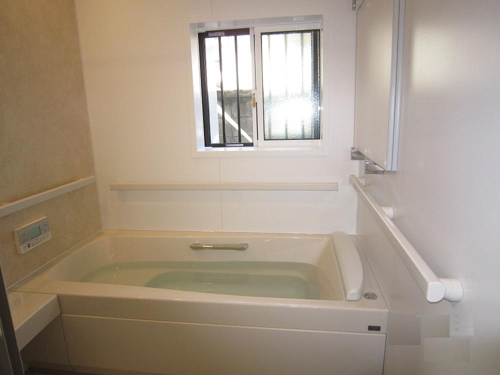 寒く狭いタイル浴室でした。暖かく広い浴室を 希望されているので、ショールームを見て頂き 高断熱浴室のスパージュを提案させて頂き、 手すり設置し、出入口の段差解消し、窓は 断熱サッシに取替て安全に暖かく入浴して 頂ける思います。