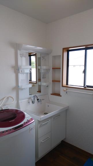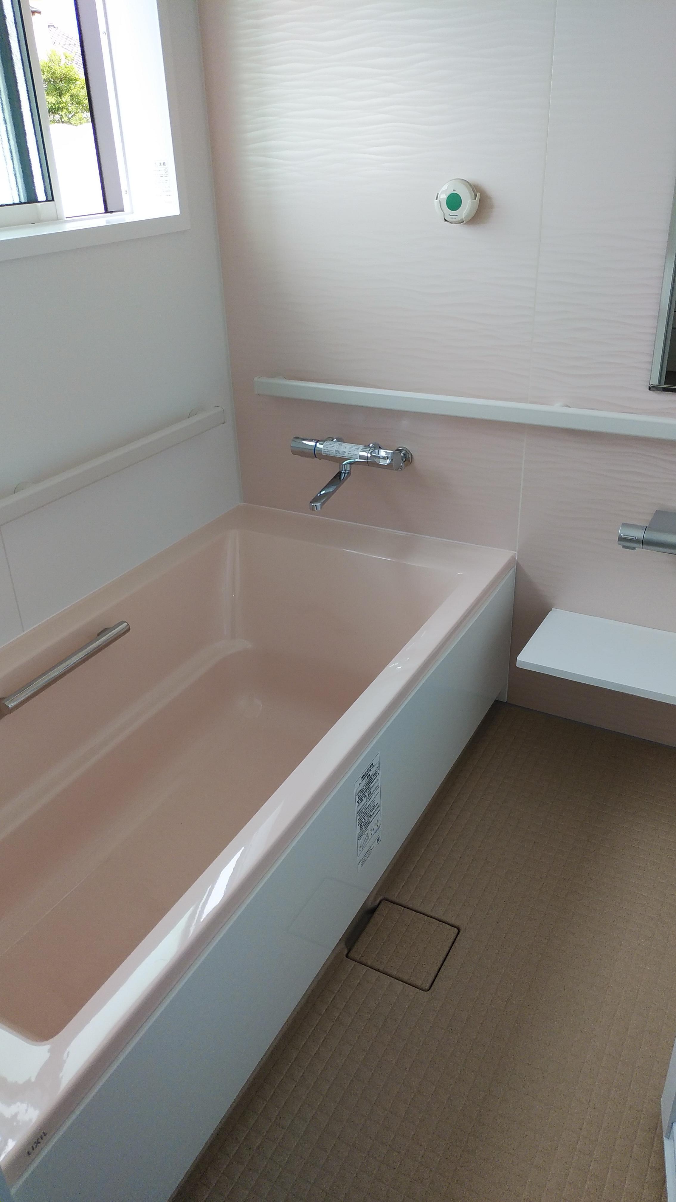 お孫さんと一緒に住むにつれて、浴室の出入口の段差、浴槽も深くいろいろと心配な箇所がありご相談されました。また、窓の高さが外部から侵入しやすいことから、浴室入替工事の際に一緒に窓も変更し、外部には目隠しルーバーも設置致しました。 浴室はLIXILアライズZ。 洗面化粧台:LIXILピアラ バケツも入るひろびろボウルが使いやすく衣類の手もみ洗いも楽ですよ。