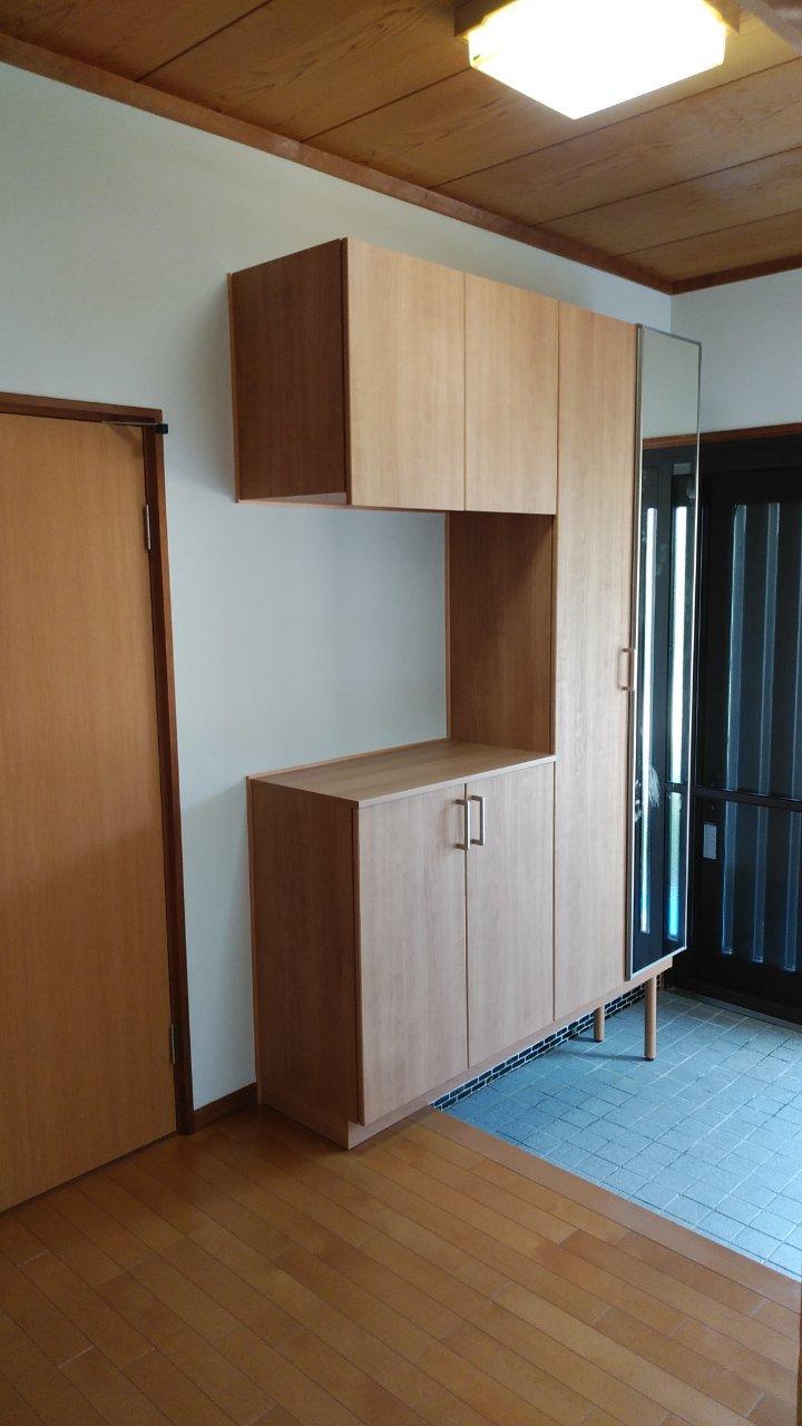 完成後、壁はクロスを張ったような明るさで細かいところも綺麗に仕上がりました。収納量もアップしたので玄関がスッキリしました!