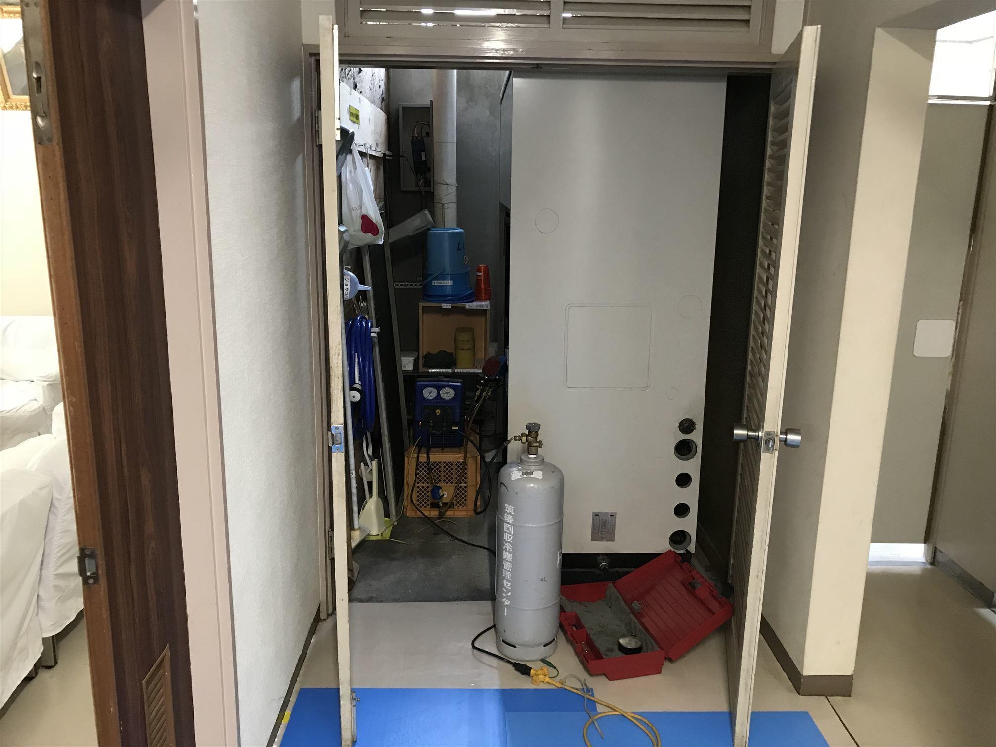 天井を剥がしが完了して、古い空調機が撤去されました。