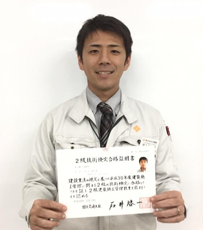 「工事担当として、必要な資格だと感じていたので、無事取得できホッとしています。
