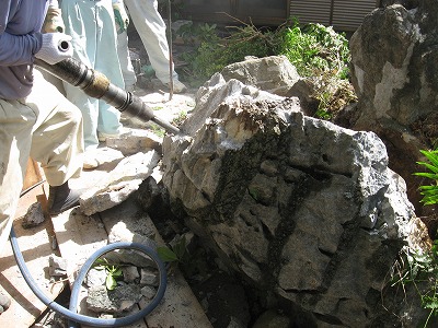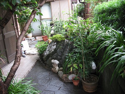 玄関の前に大きな岩があり、お庭が占領されていました。大きな岩を取り除いたら、こんなにりっぱな温室のできあがり☆