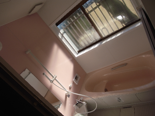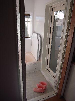 お客様の要望により、浴室から外へと出られる扉を取り付けました。