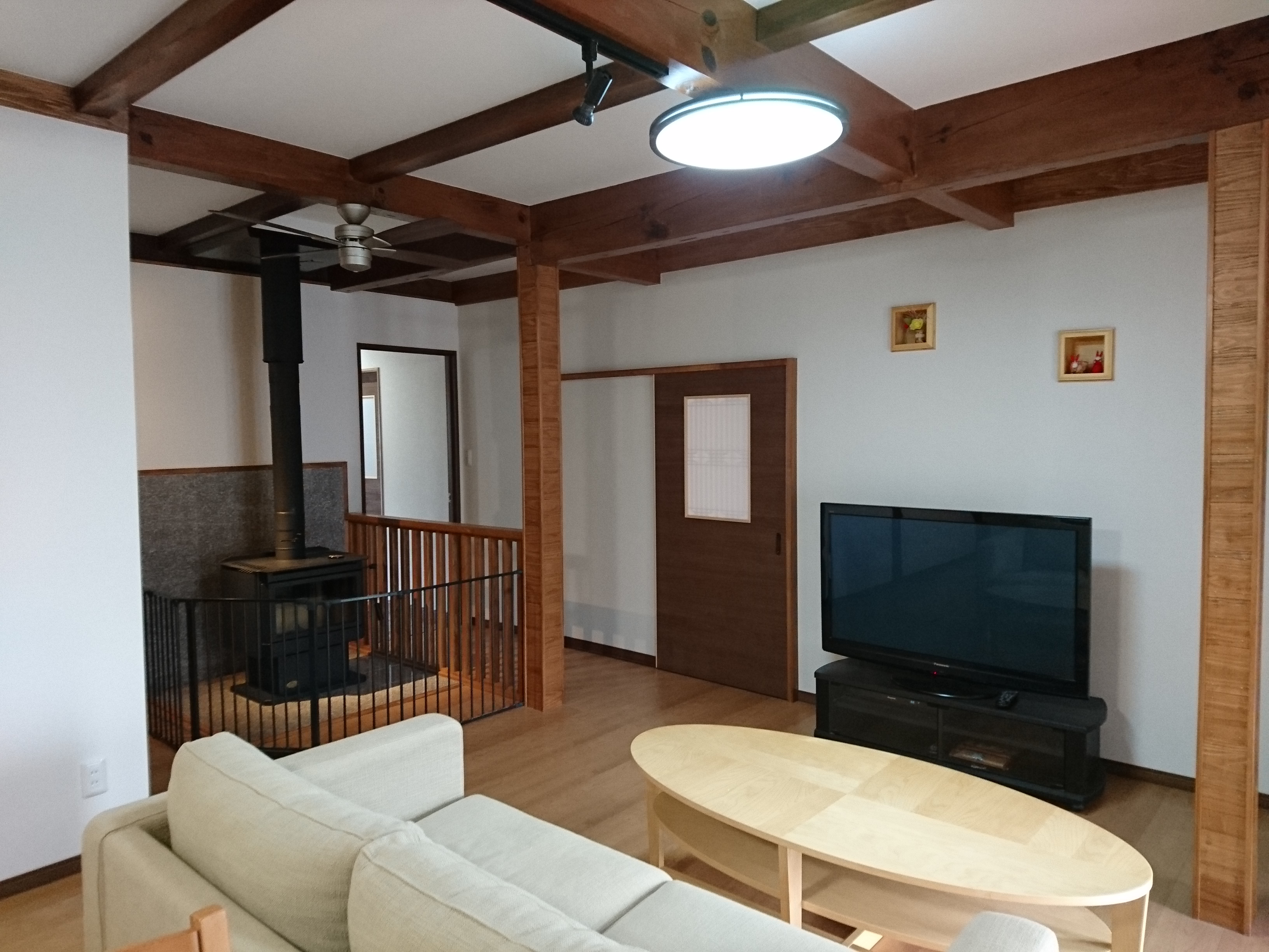 薪ストーブのある家に憧れていたというお施主様のご要望に答え、リビングに薪ストーブを設置しました。