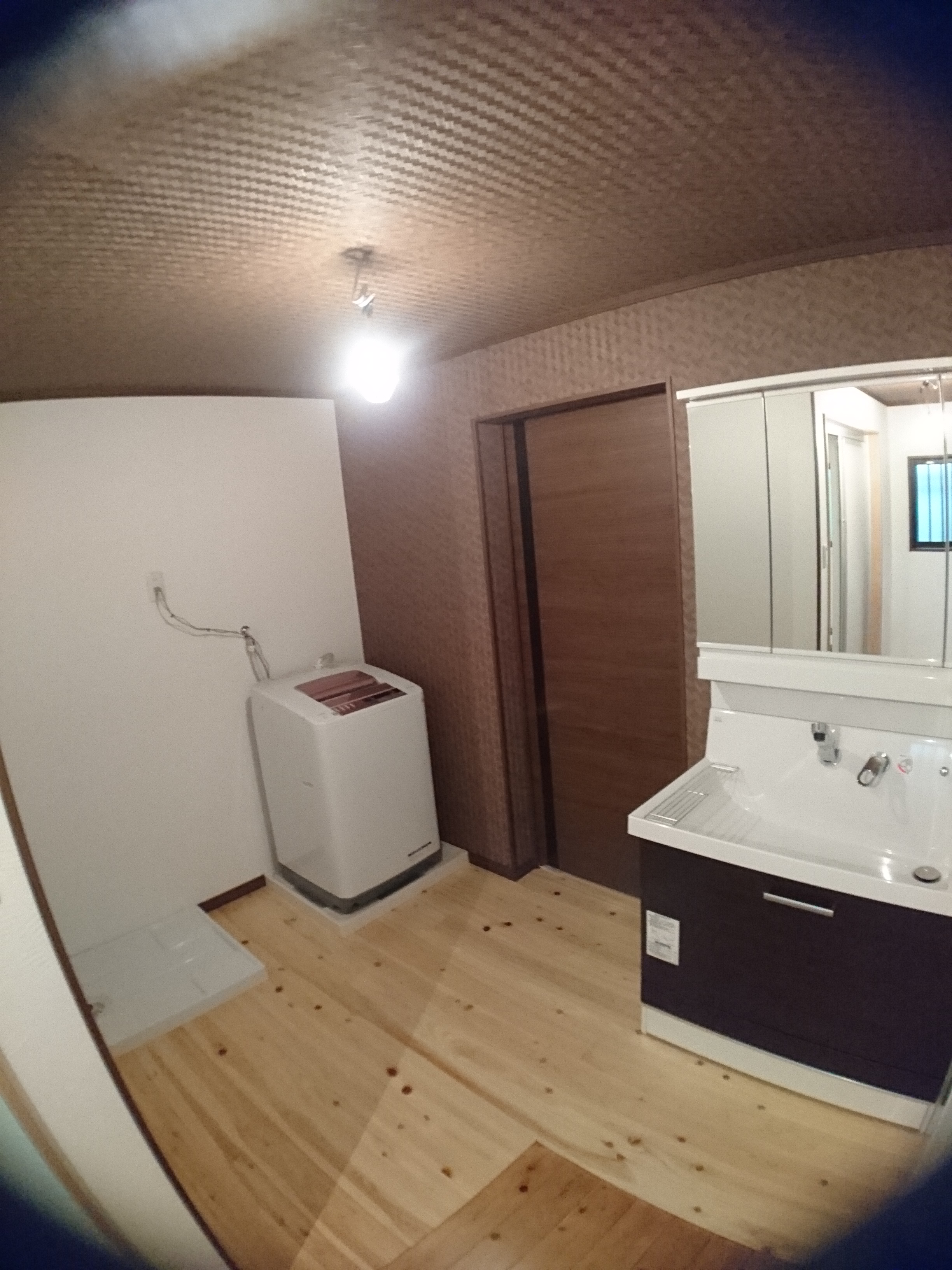 洗面化粧台と木目調の床が、温もりのある洗面室へ