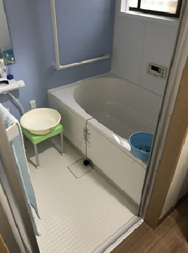 タイルの隙間からの水漏れでしたので、ユニットバスの取替を勧めました。 土台が腐っており、新しく取り替えています。 手すりの位置も入念にお打ち合わせさせて頂き、キレイな浴室へ生まれ変わりました。