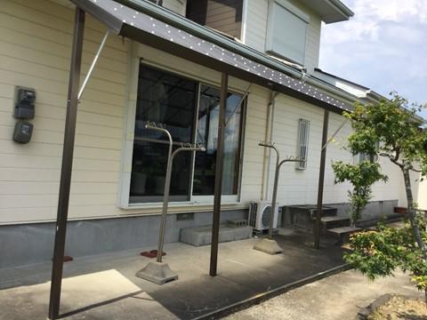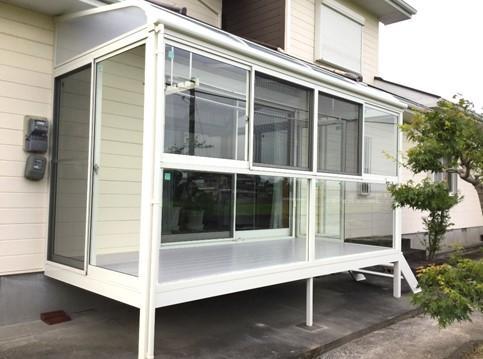 白の外壁に白のテラスがとても素敵です。天気が悪い日も洗濯物を干すことができ、より使い勝手の良い空間ができました。防犯ガラスを使用し、防犯対策もばっちりです。