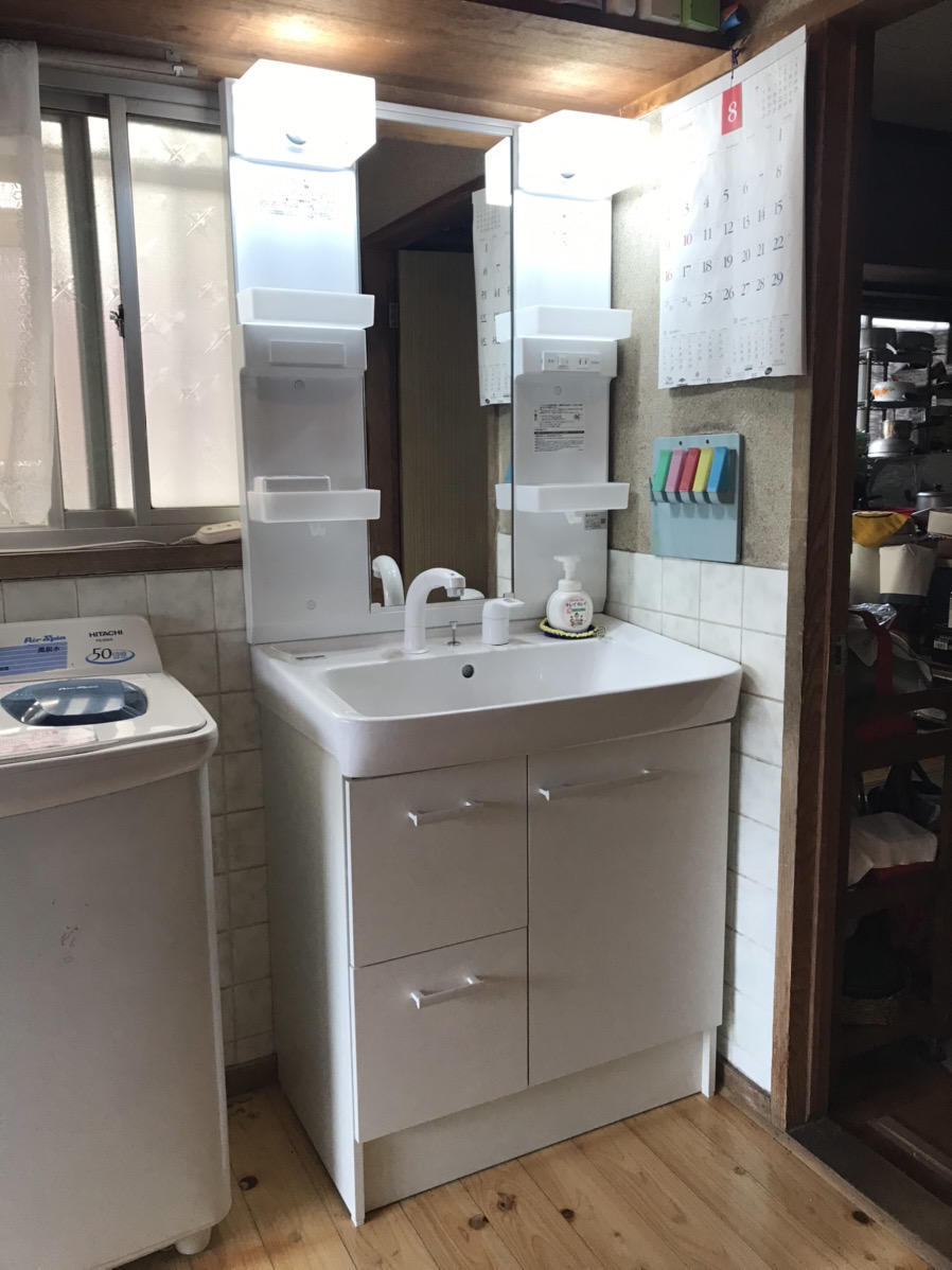 水栓の調子が悪く、水の出が悪いということでした。 引き戸が加わり出し入れしやすい収納になりました。そして、よく使う正面のハンドル位置で「水」を出す省エネ設計により、お湯を無意識に使うことがないため、無駄な給湯エネルギーを使わずに済みます。
