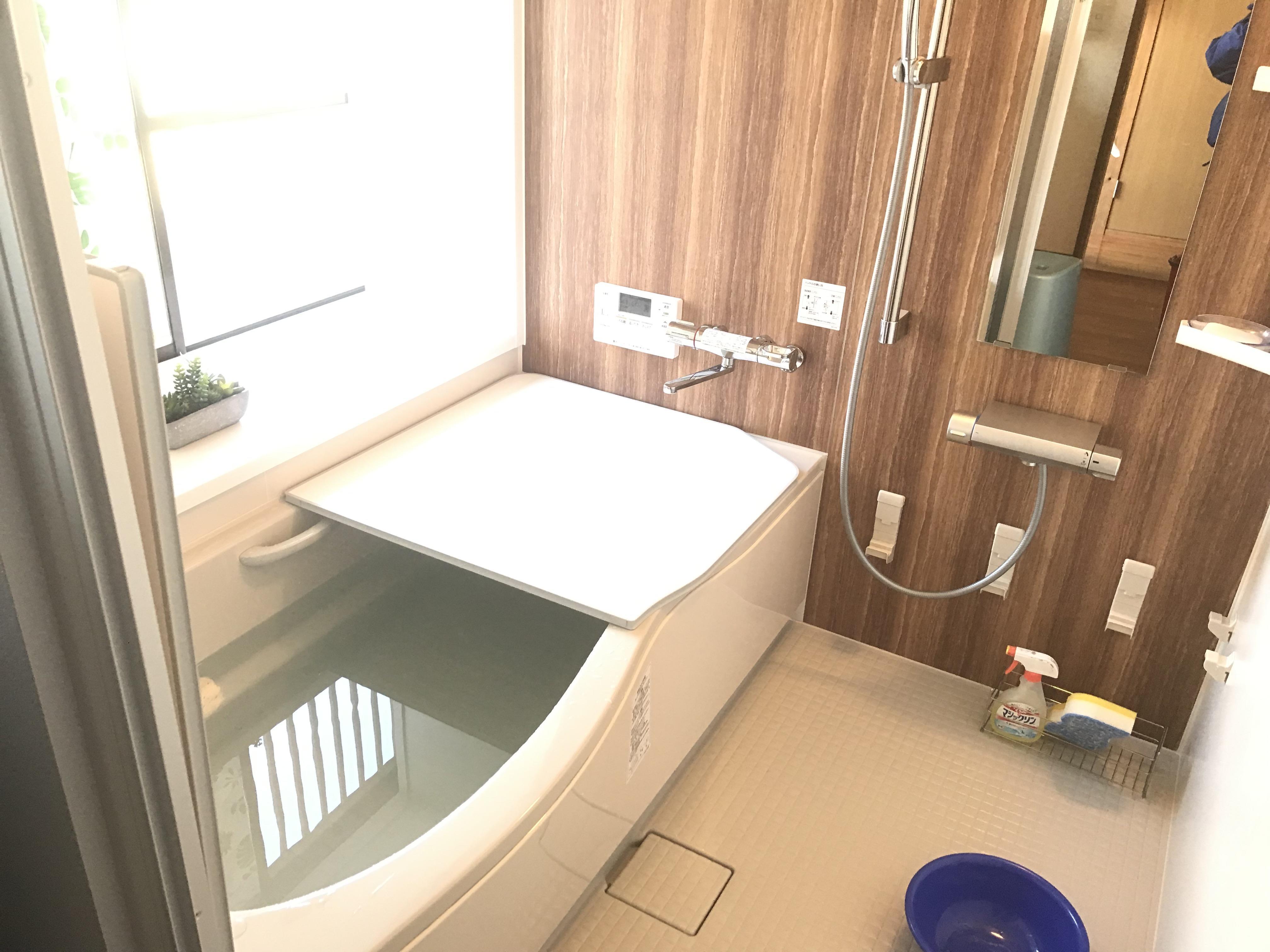 既存の浴室はタイル張りなので、タイルの木目に汚れがたまりやすく、カビも生えやすいとのことでした。そして、冬はやはりユニットバスに比べ寒いです。キレイサーモフロアという床は、特殊な表面処理がしてあり、スポンジでサッと洗うだけでキレイになるので掃除がラクラクです。また。独自の断熱層で、足裏から逃げる熱をなくし冷たさを感じにくくします。