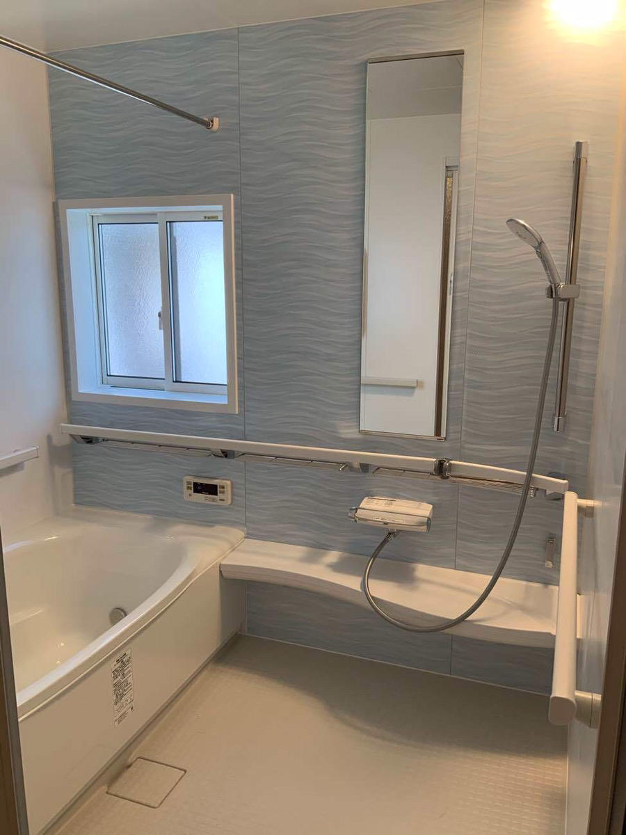既存の浴室は、タイル張りで、窓も大きく冬はとても寒い浴室でした。LIXILアライズで、足元から温かいを実現。シャワーの使いやすさにこだわっていて、ヨコのスマイルカーブ機能で座ったままラクに手が届き浴室内の動作を効率的にしてくれます。タテのスマイルカーブ機能で高さを調節し手軽にオーバーヘッドシャワーができます。