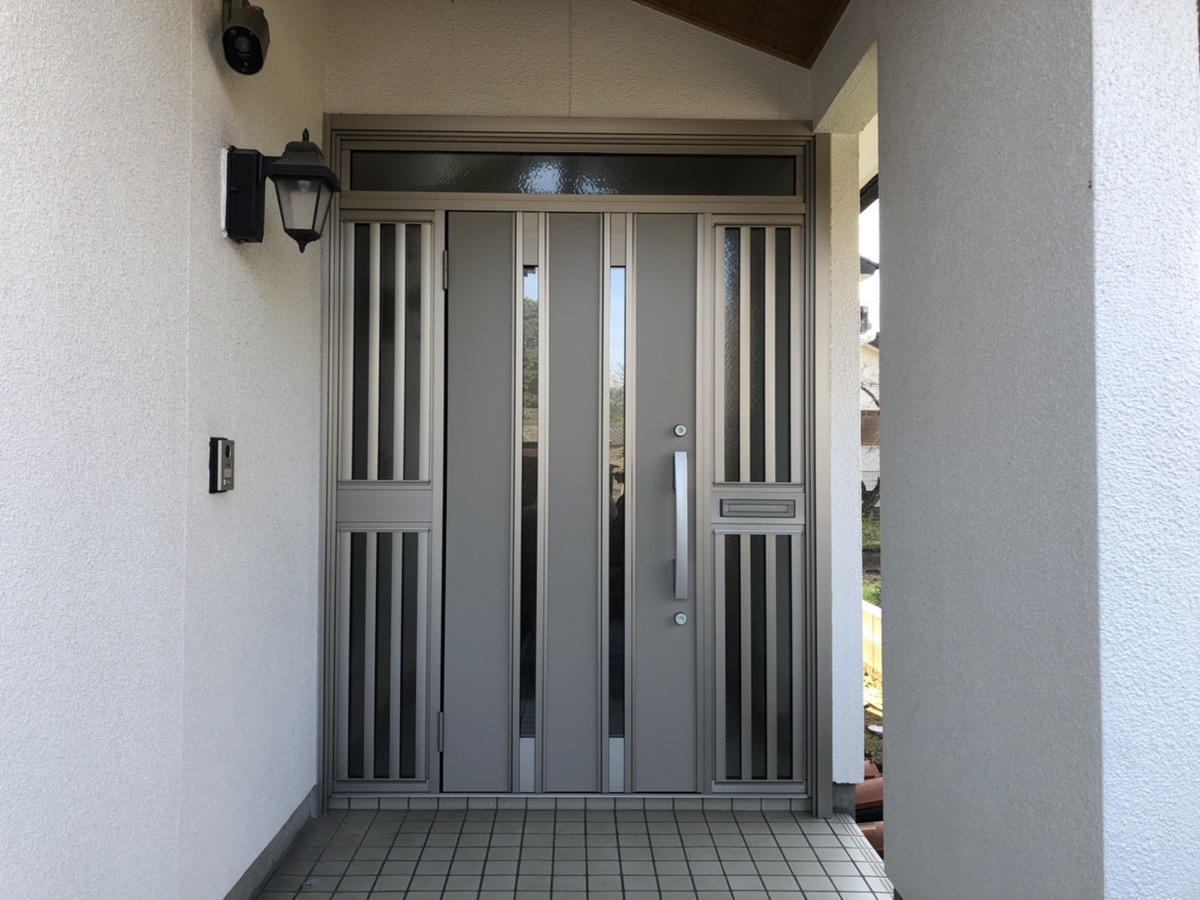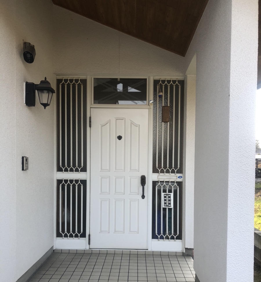 ガラスの部分がだいぶ透けるので、透けないようにしたい。防犯面を強化したい。というお問い合わせでした。 色も壁にあっていてすっごくかっこいい玄関になりました。
