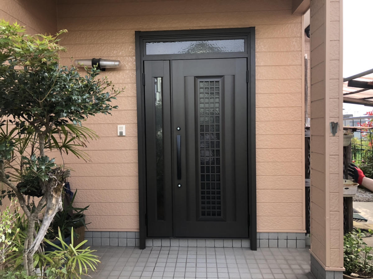 古賀組が毎月二日間行っております「リフォーム相談会」にお越しいただき、相談会特別価格で施工させていただきました! 玄関は家の顔です。色が変わるだけでガラリと印象が変わりますね。