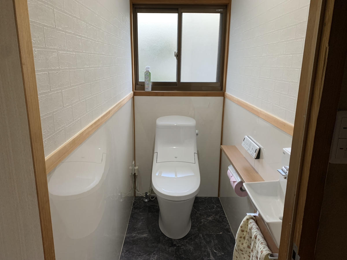 リフォーム後、お客様から、「これまで、お孫さんがトイレに行きたがらなかったのに、リフォームしてからトイレに喜んでいくようになりました」とのお声を頂きました! 床は、色を思い切って黒のクッションフロアをチョイスしましたが、実際に使っていただいて、おしゃれで掃除がしやすいとのことで大変お慶び頂きました。