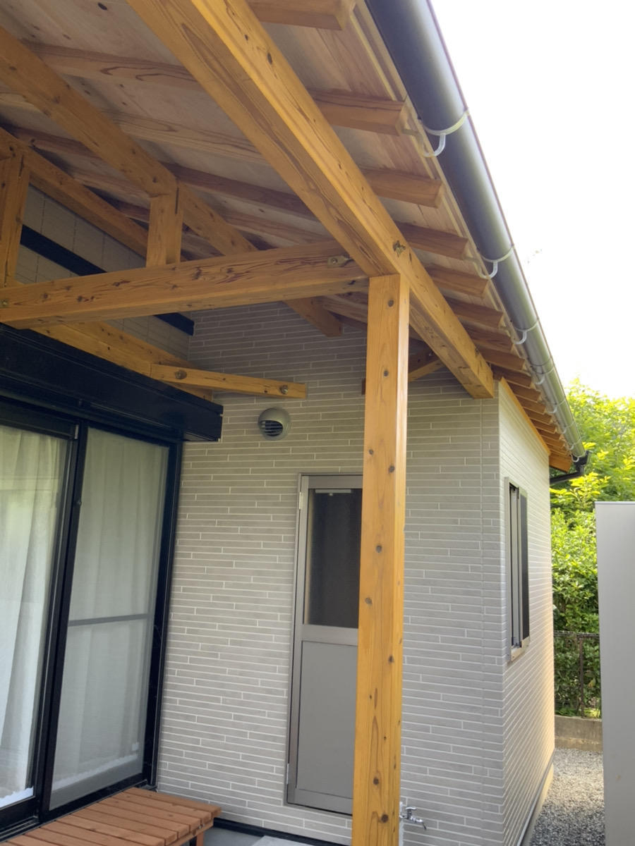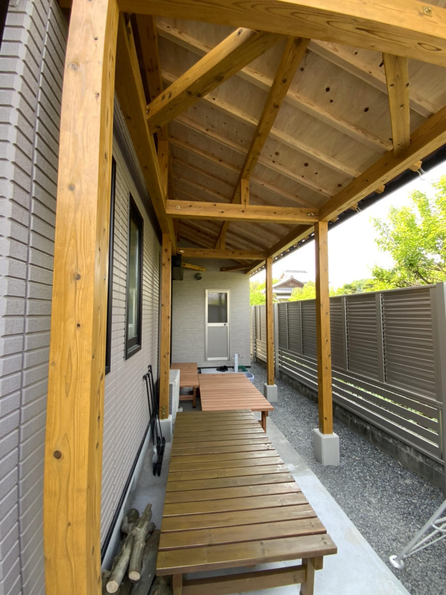 大雪の際、テラスに雪が落ちてきて壊れたため、丈夫なテラスが欲しいとのご要望でした。また、奥様より、収納が足りないから勝手口から入れる倉庫が欲しいとのご要望がありました。