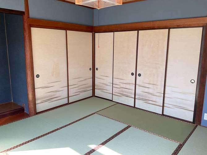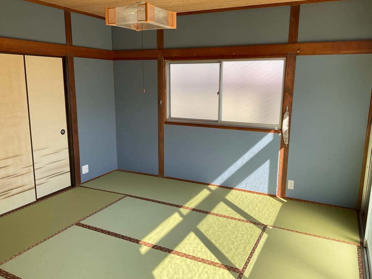 畳の表替えも承っております。壁はもともとぬりかべだったところに、青色のクロスを貼りました。