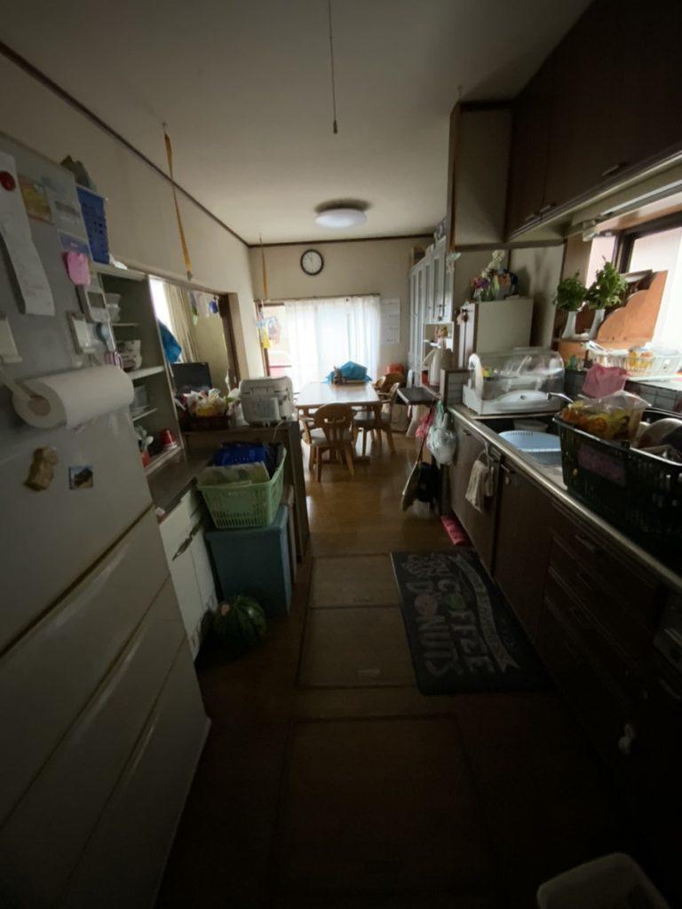 壁付けのキッチンでした。元々キッチンがあったところは、大容量の収納に!