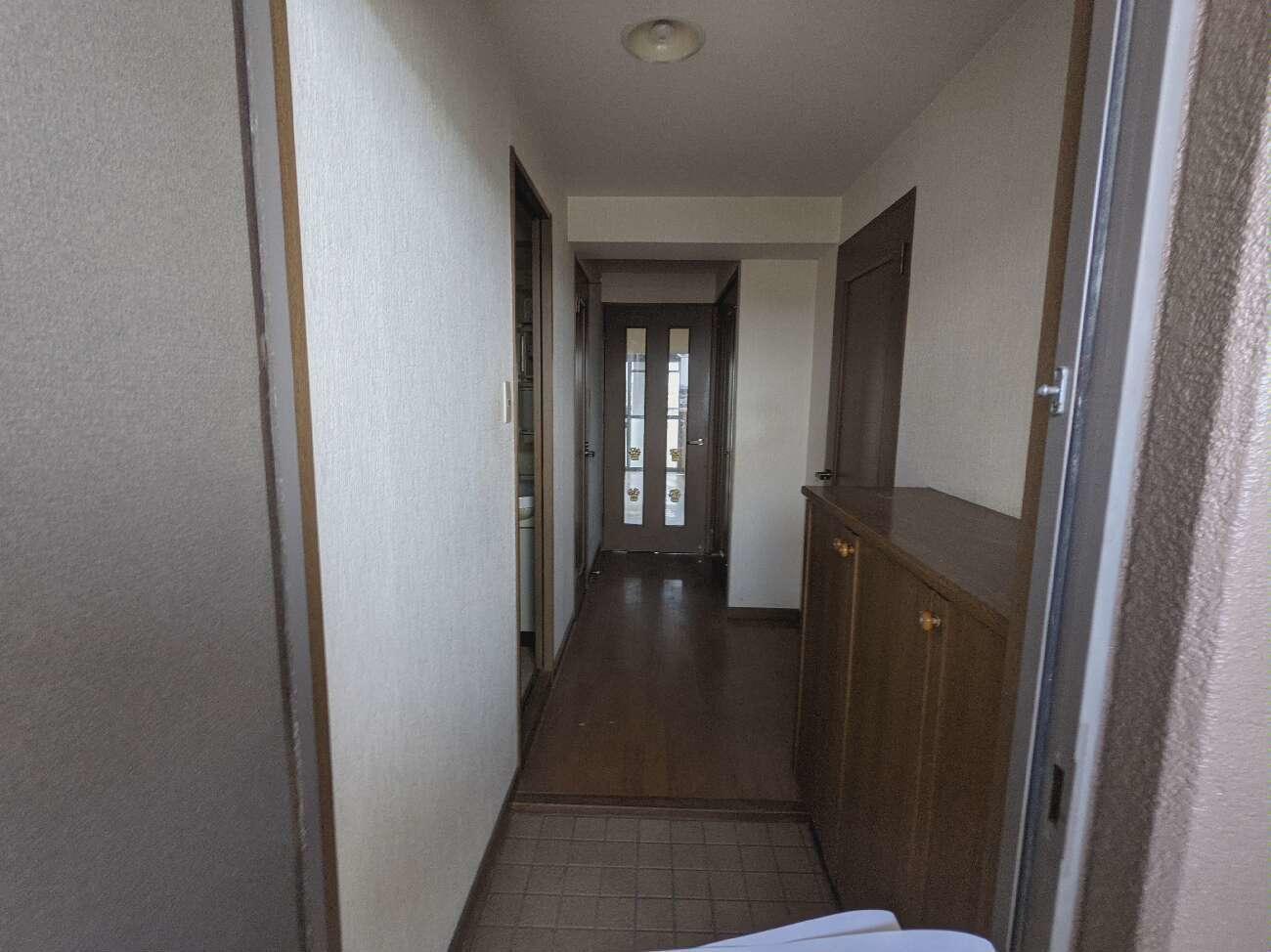 正面のドアからリビングダイニングの光が漏れ、明るい雰囲気になりました。靴箱も取り替えました。