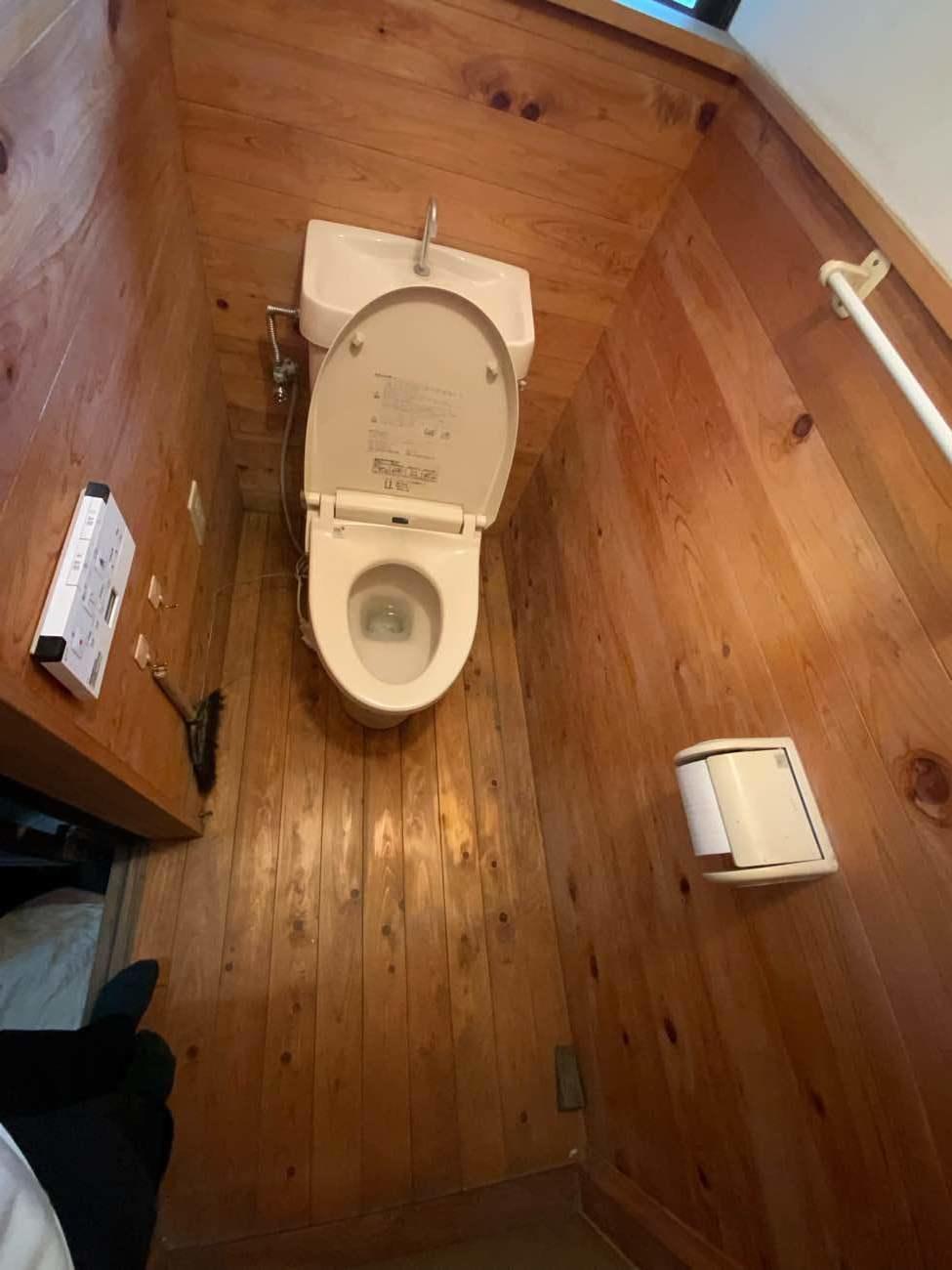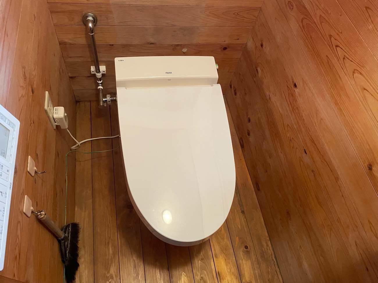 タンクレストイレを設置しました。 自動のお掃除リフトアップ機能があり、便器との隙間汚れも掃除できます。