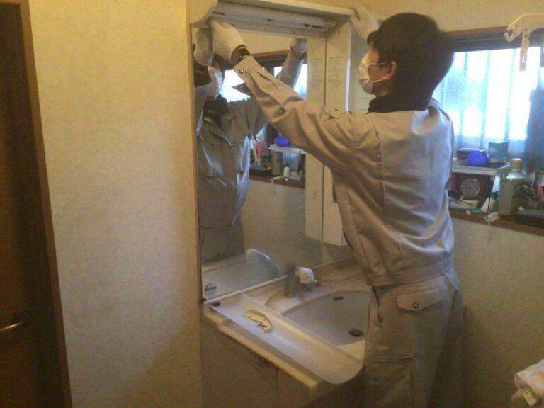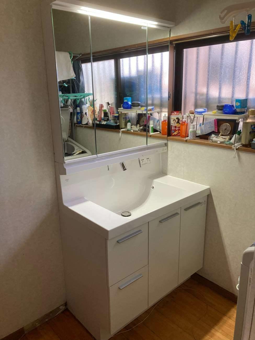 洗面台が水漏れを起こしていて、床等がだめになる前に取り替えたいというご要望で、古賀組のチラシを見てご相談いただきました。