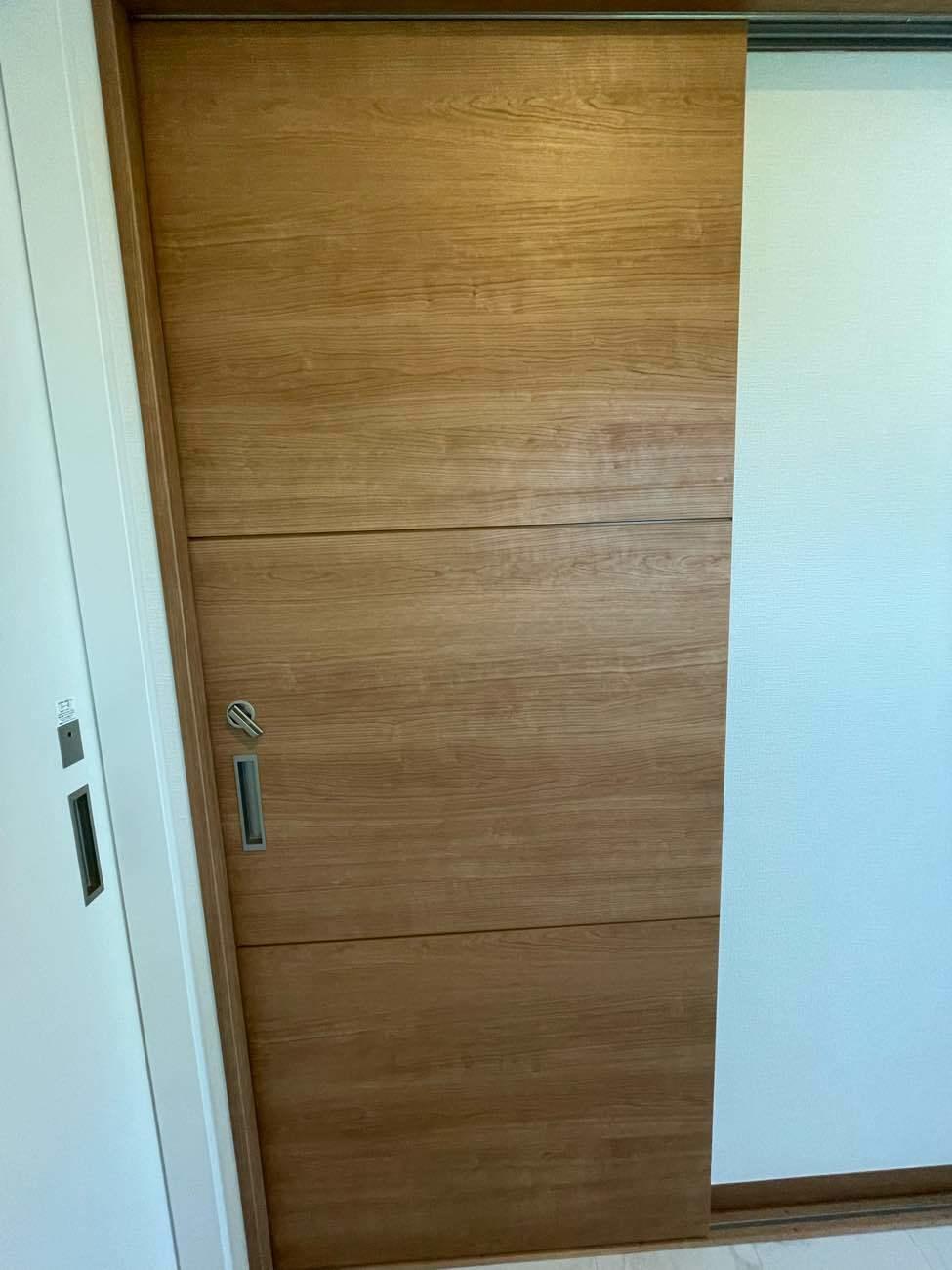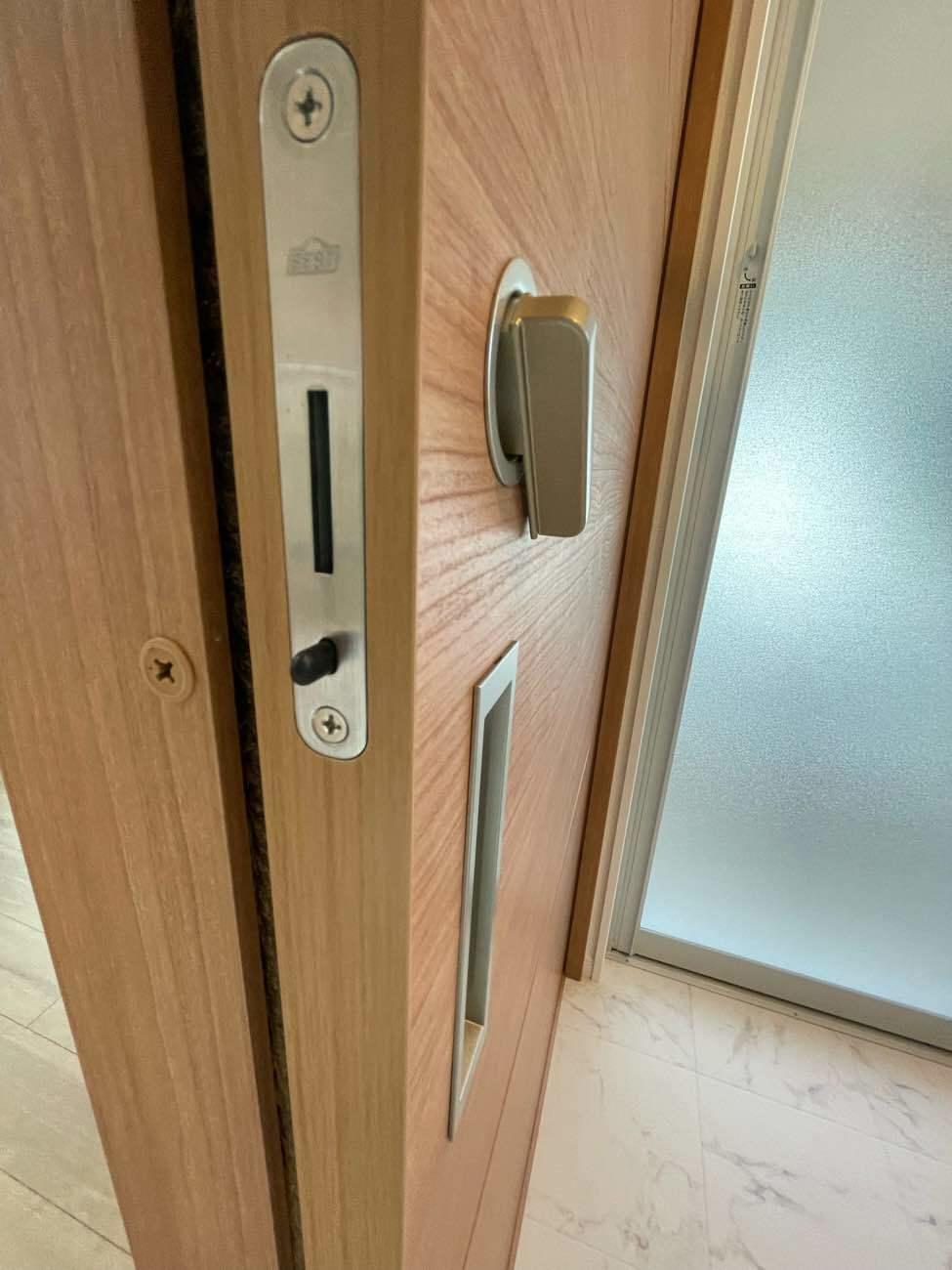 セカンドハウスとしてお使いのお家の脱衣室の扉に、鍵を付け忘れてしまっていたとのことで、鍵だけ新しく取り付けることが難しいことなどご説明し、鍵付きの扉に取り替えることになりました。