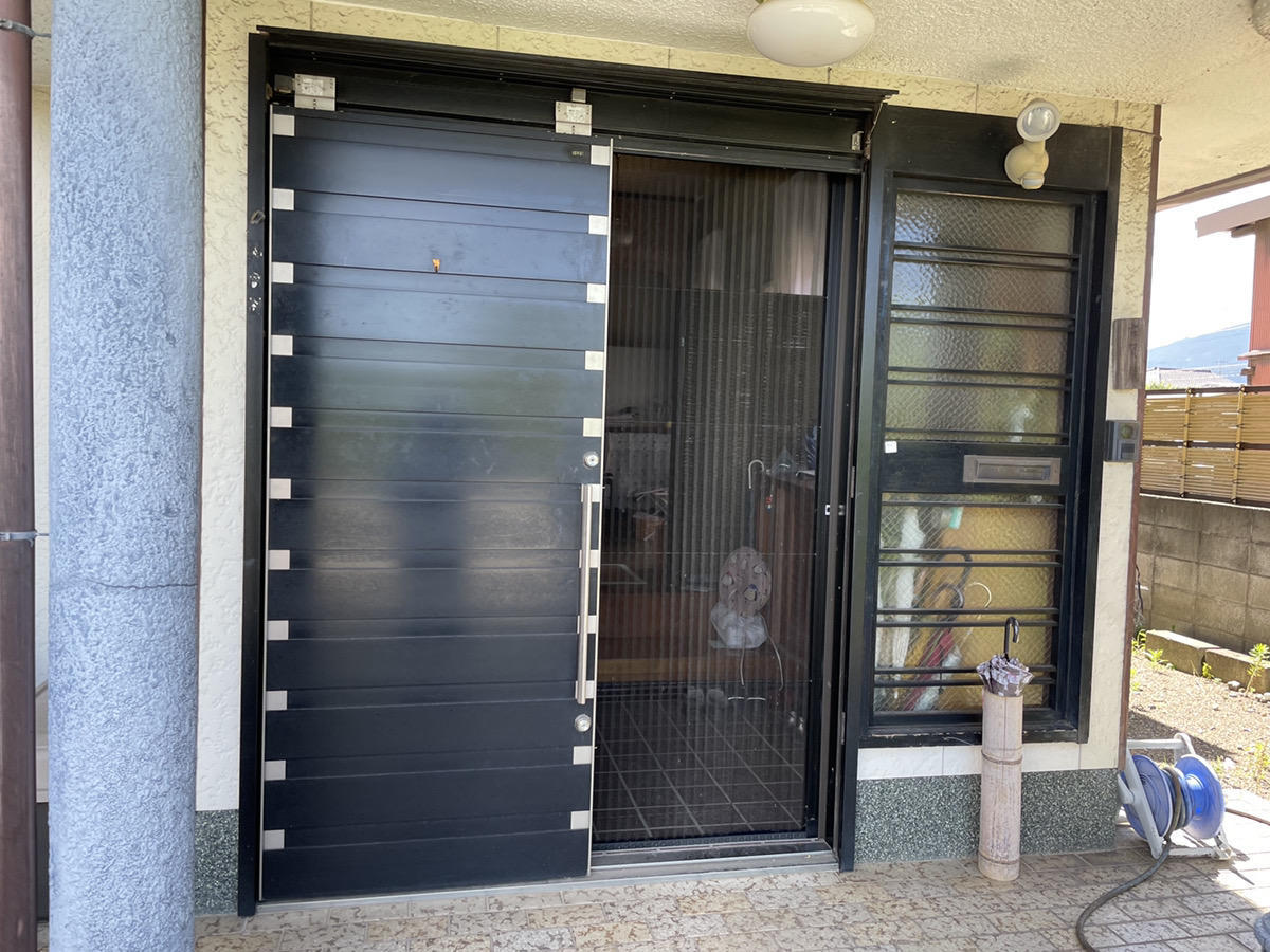 「玄関にシャッターをつけてほしいです。台風の時に風でガタガタなっていて一人だし怖いんです」とシャッター取り付けのご依頼をいただきました。