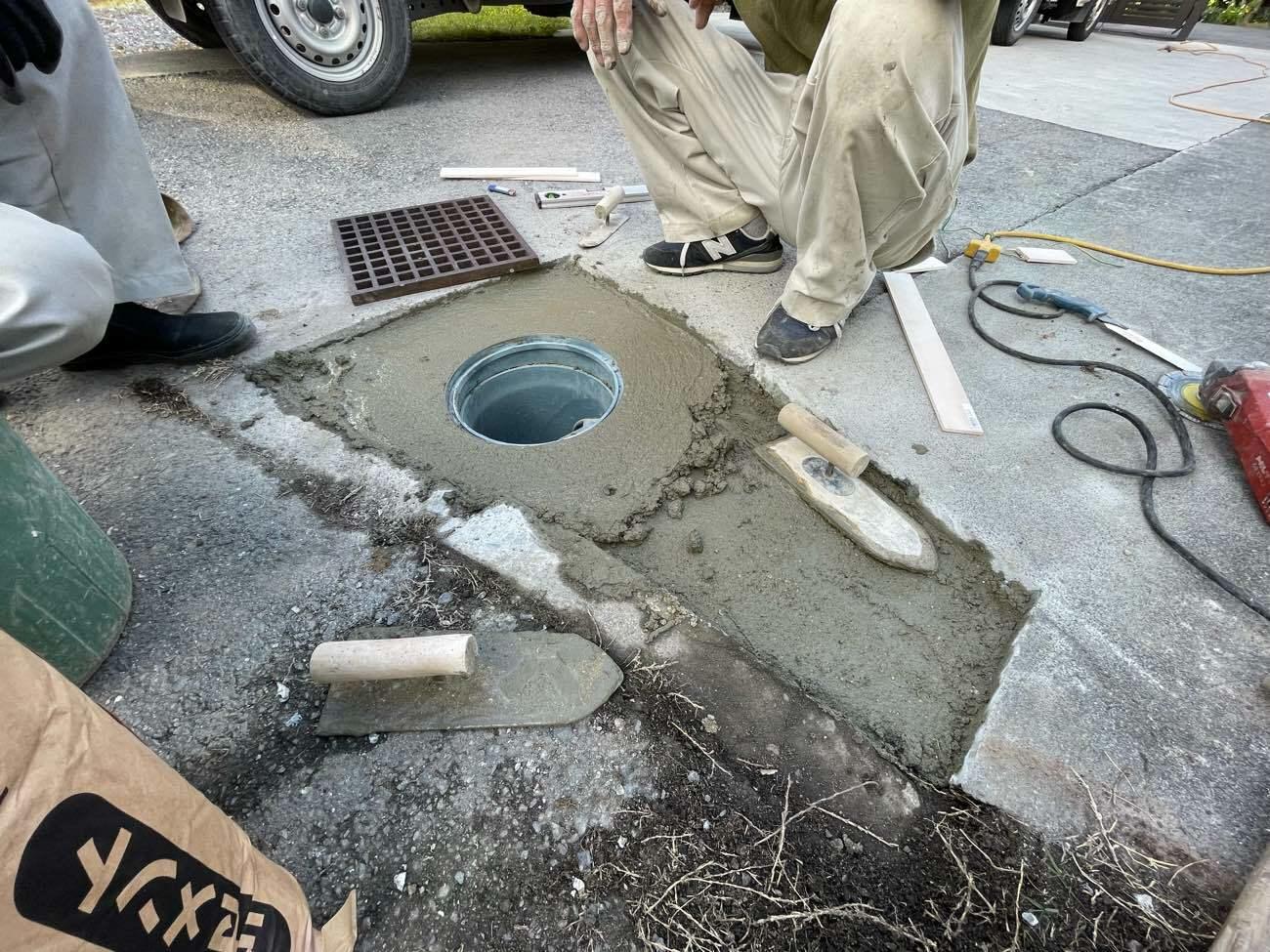 コンクリが欠けたりしているので、こちらの排水桝を取り換えます。 桝自体の交換は1日で終わりますが、その周りの補修に約2日程度かかります。