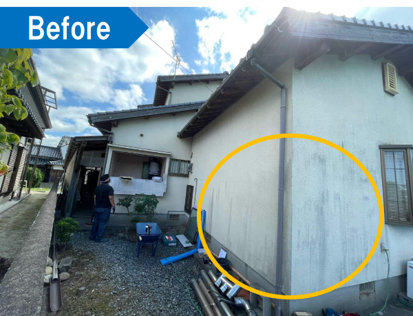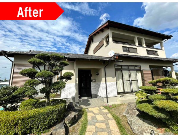 外壁の汚れが目立ってきたとのことで、塗装工事のご依頼を頂きました。同系統の色で塗装し、以前の雰囲気を残したまま汚れやひび割れが無くなり、美しい外観が戻りました。