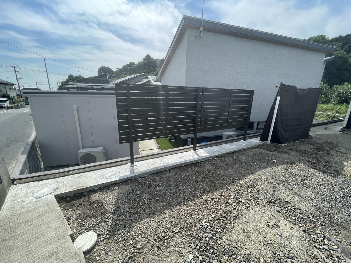 LIXIL フェンスAB YS3型を約4m施工しました。木彫カラーが人気の商品です。