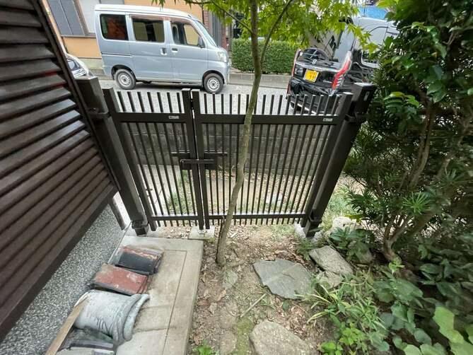 LIXIL「ハイ千峰」の親子扉仕様です。 ちょっとした通り道の門として最適です。LIXILのなかでもお手頃価格ながらカラー展開が4色あり、ロングセラー商品となっています。今週、両開きバージョンの事例もアップしています。