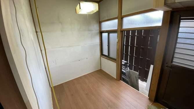 台所横の土間を部屋と同じ高さにあげて、フローリングを貼るリフォーム事例です。