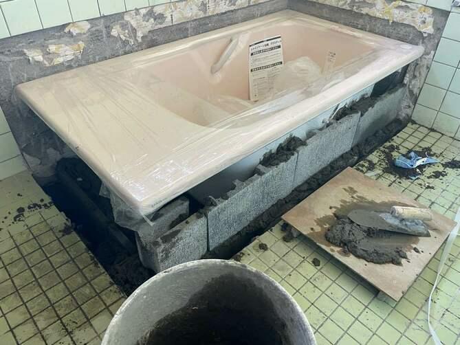 浴槽のみの取り替えの事例です。 お客様が派手な色が好きとのことでオレンジのタイルを希望されました。