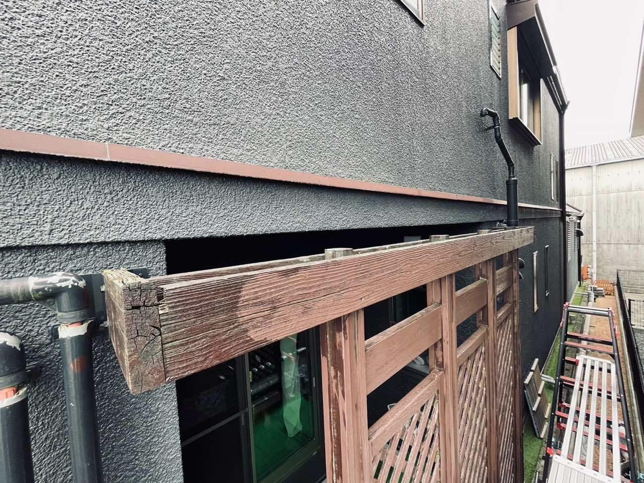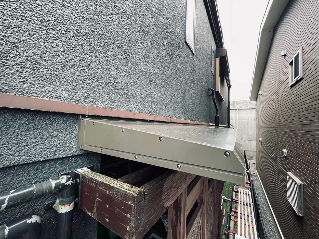 屋根からベランダに雨がしたたってくるのを防いでほしいとのご要望で、後付けできるLIXILの庇「キャピアA型」を取付けました。庇をつけるメリットは、小雨の吹き込みや屋根からのしたたりを防げるだけでなく、夏の日差しの入り込みを軽減させることなどがあげられます。
