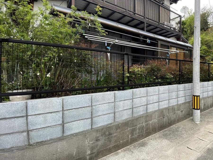 ブロック塀が古くなって欠けた部分が出てきたりして、見栄えが悪かったり危なく感じたりしてきたとのことで、新しいフェンスの設置をご依頼頂きました。ブロック塀だけだったものがアルミフェンスを設置して、見た目もオシャレになりました。ブロック塀と比較してアルミフェンスが優れている点は、見た目のオシャレさだけでなく、風通しや明るさを確保できるようになることも挙げられます。お客様のお困りごとやご要望に合わせてご提案しますので、フェンスでお悩みの方はぜひご相談ください!