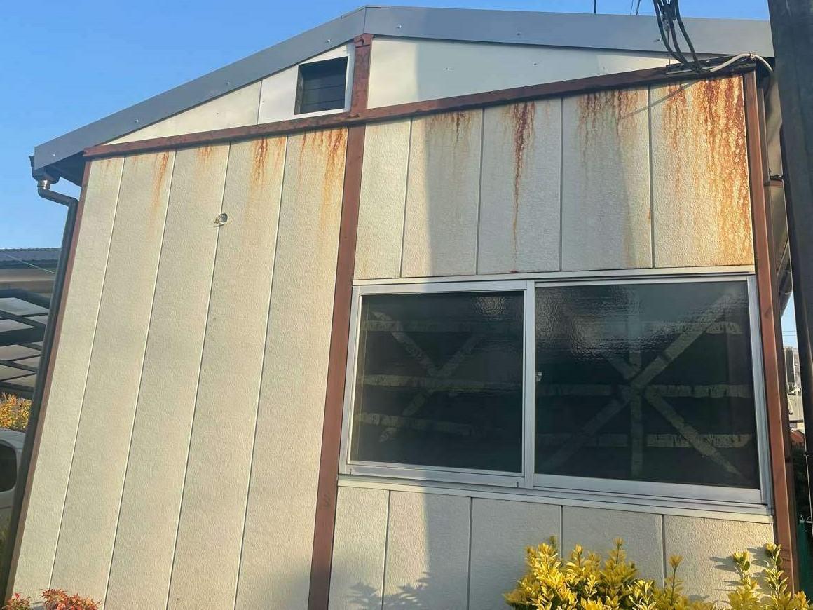 外壁に錆が発生してそれが広がってきたとのことで、塗装のご依頼をいただきました。外壁の塗装目安は一般的に10年~20年といわれていますが、錆が発生すると外壁そのものを痛めてしまう場合があるので、広がってしまう前に早めの対処が必要です。外壁の錆が目立ってきたとお悩みの方は、ぜひご相談ください。