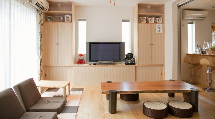 住み慣れた住まいを、より快適に、より安全に大規模リフォームします。 断熱改修とバリアフリー工事でエコポイント獲得! 無垢の床材と床暖房で冬も快適です! エコを考えて瓦は再利用しました! 長寿命のガルバリウム鋼鈑の外壁でメンテナンスもラクラクです! キッチンはガスからIHに変えただけで 既存のシステムキッチンをキレイに磨いて再利用しました。 以前は和室で床の間だった所には、大工さん手造りの オシャレな収納と TVボードを造りました!キッチンのカウンターも、モチロン大工さんの手造りです。
