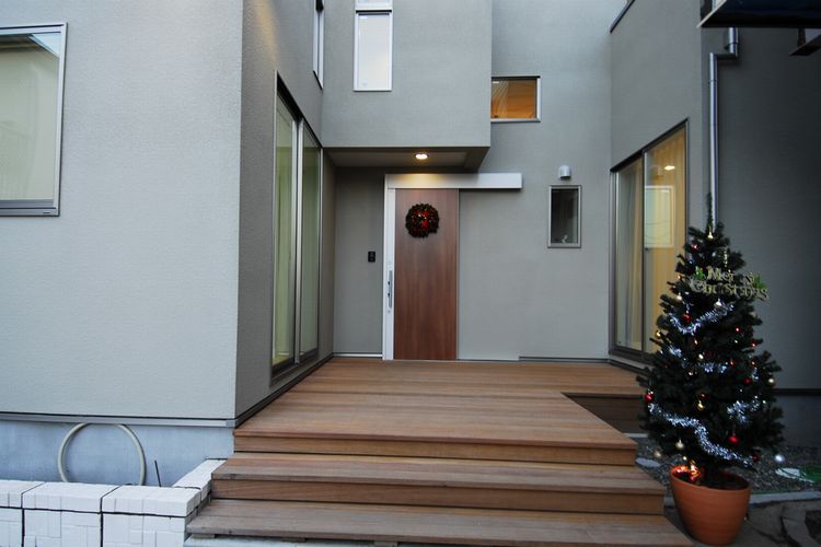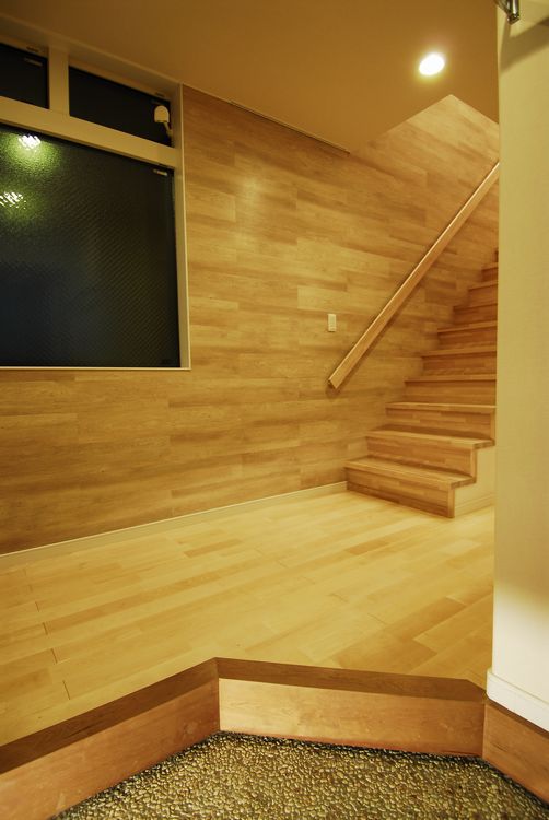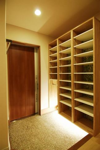 「ペットと家族の絆を深める」ペットは大切な家族の一員。愛猫と楽しく生活できるアイデア溢れるコンセプトハウスが完成しました。そして、ご両親のお住まいが建つ敷地内に隣接してのご新築。三世代がそれぞれの生活スタイルを保ちながら、ご一緒に暮らせるお住まいを「ozaco 」×「建築家 佐倉 由浩」が提案させていただきました。家族の想いをカタチに・・・ - 大きな収納棚を備えた玄関ホール
