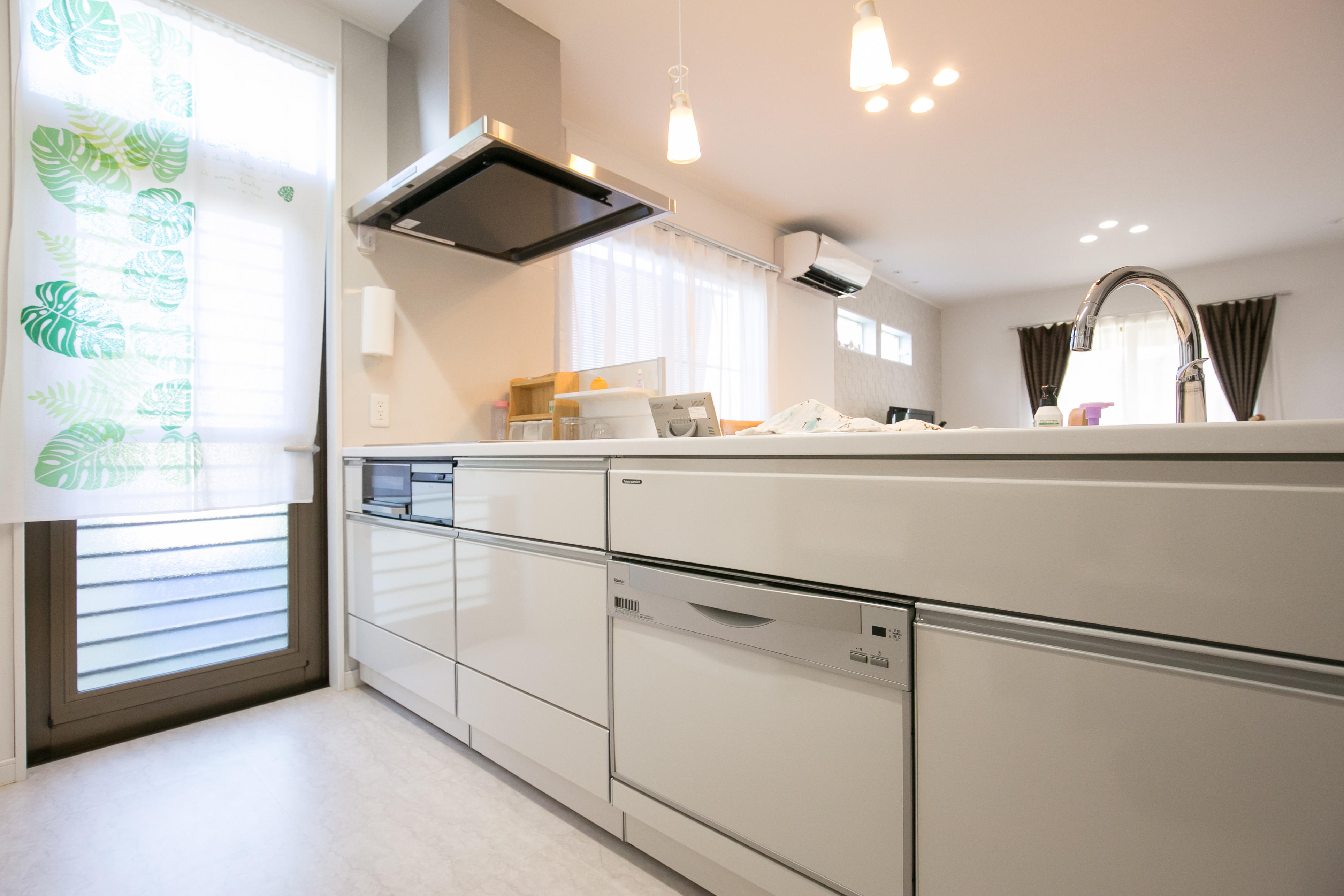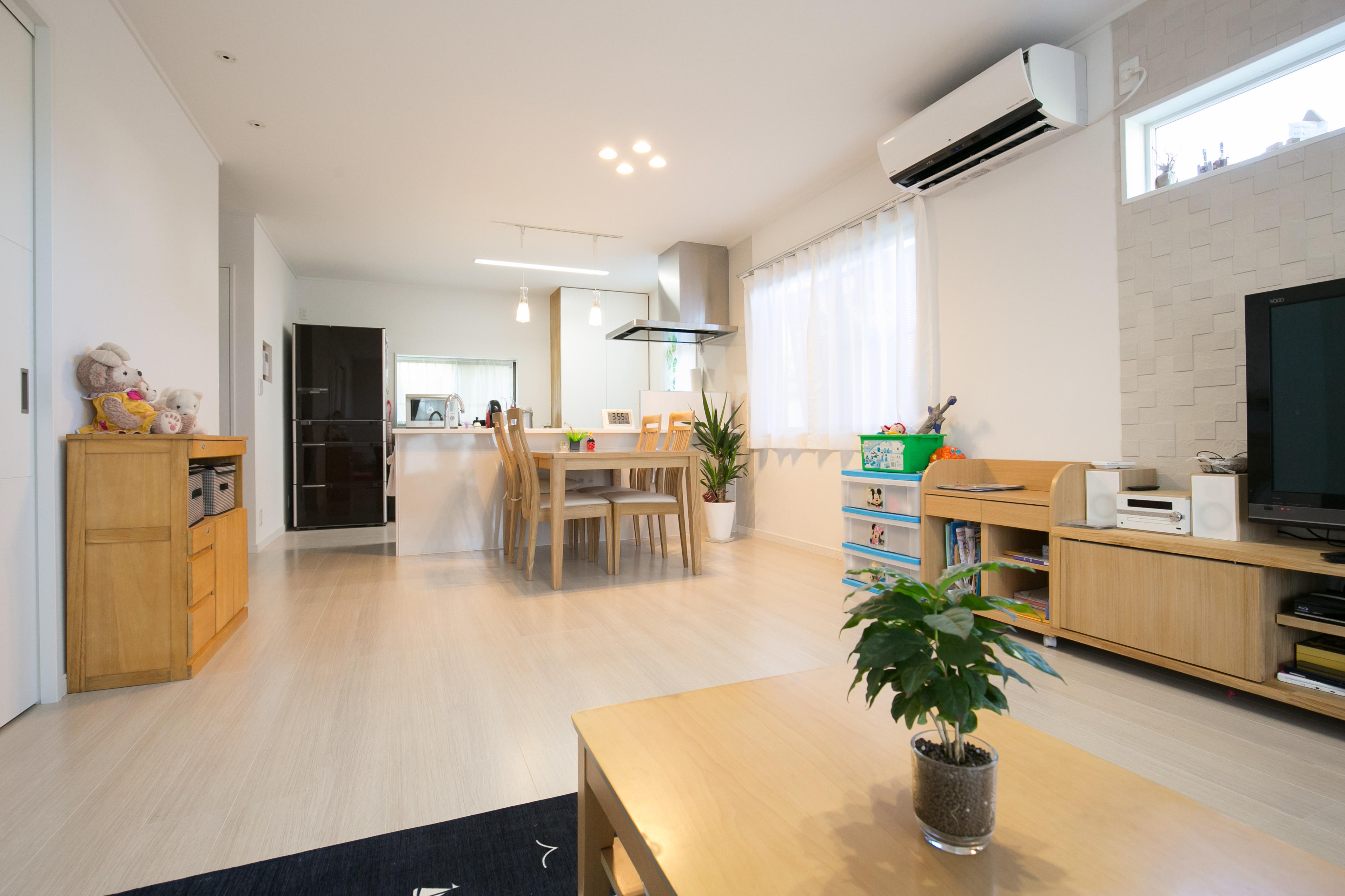 壁付けだったキッチンとダイニングはカウンターと吊戸棚で2つの空間に分かれていました。料理を作るお母さんはいつも後ろ向き。そこで、キッチンを対面式に変更。いつでもお母さんは子供たちの笑顔を見ながら料理が作れます。空間を仕切っていた吊戸棚も撤去して、キッチンからダイニング、リビングが一気につながりました。