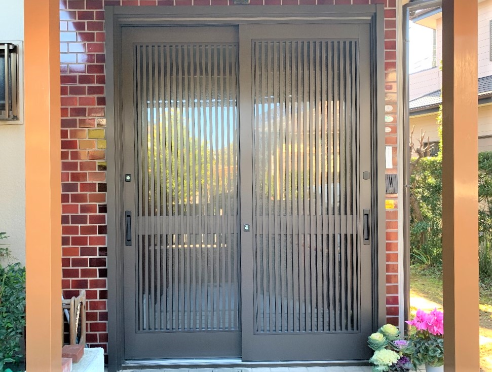 寒い玄関にお悩みでしたので、断熱性能に優れた玄関への交換工事をさせて頂きました。 玄関アプローチの階段が危険だったので、スロープに改修し歩行補助手すりを設置しました。
