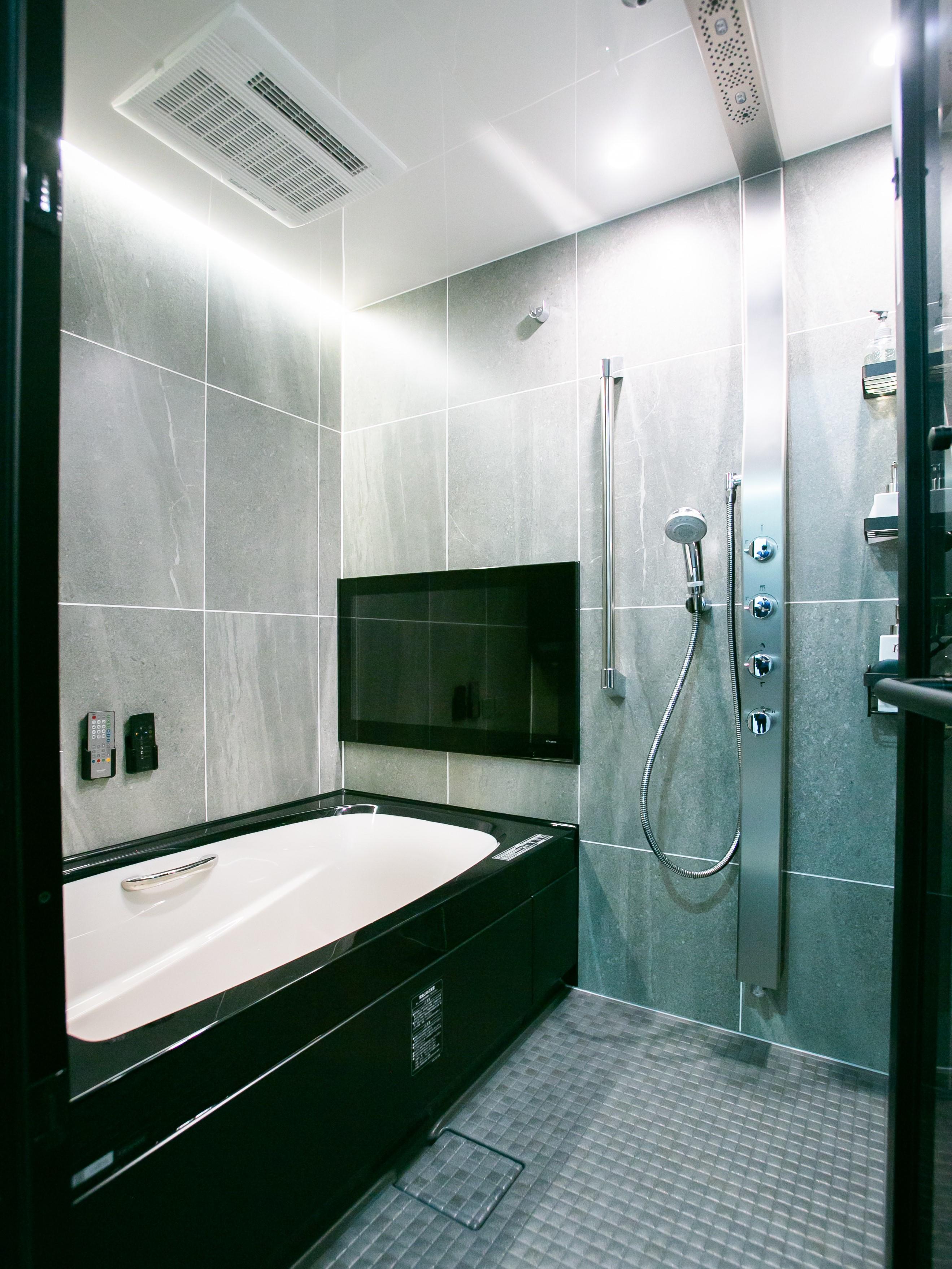 浴室はLIXILのシステムバスルーム『スパージュ』をご採用いただきました。まるでショールームのように、快適な機能が盛り沢山!!お湯が首から肩をなでるように流れる「アクアフィール(肩湯)」。全身を包むようなボリューム感のあるお湯の広がりを再現した「アクアタワー(オーバーヘッドシャワー)」。落下するお湯による心地よい刺激感を味わえる「アクアタワー(打たせ湯)」。まるでスパリゾート施設のようなバスタイムをご自宅でお過ごしいただけます。さらに、「浴室テレビ」と「フルデジタルサウンドシステム」を組み合わせれば、臨場感ある映像とサウンドでバスタイムが至福のひとときに。今回はキャンペーンで「換気乾燥暖房機」をプレゼント!