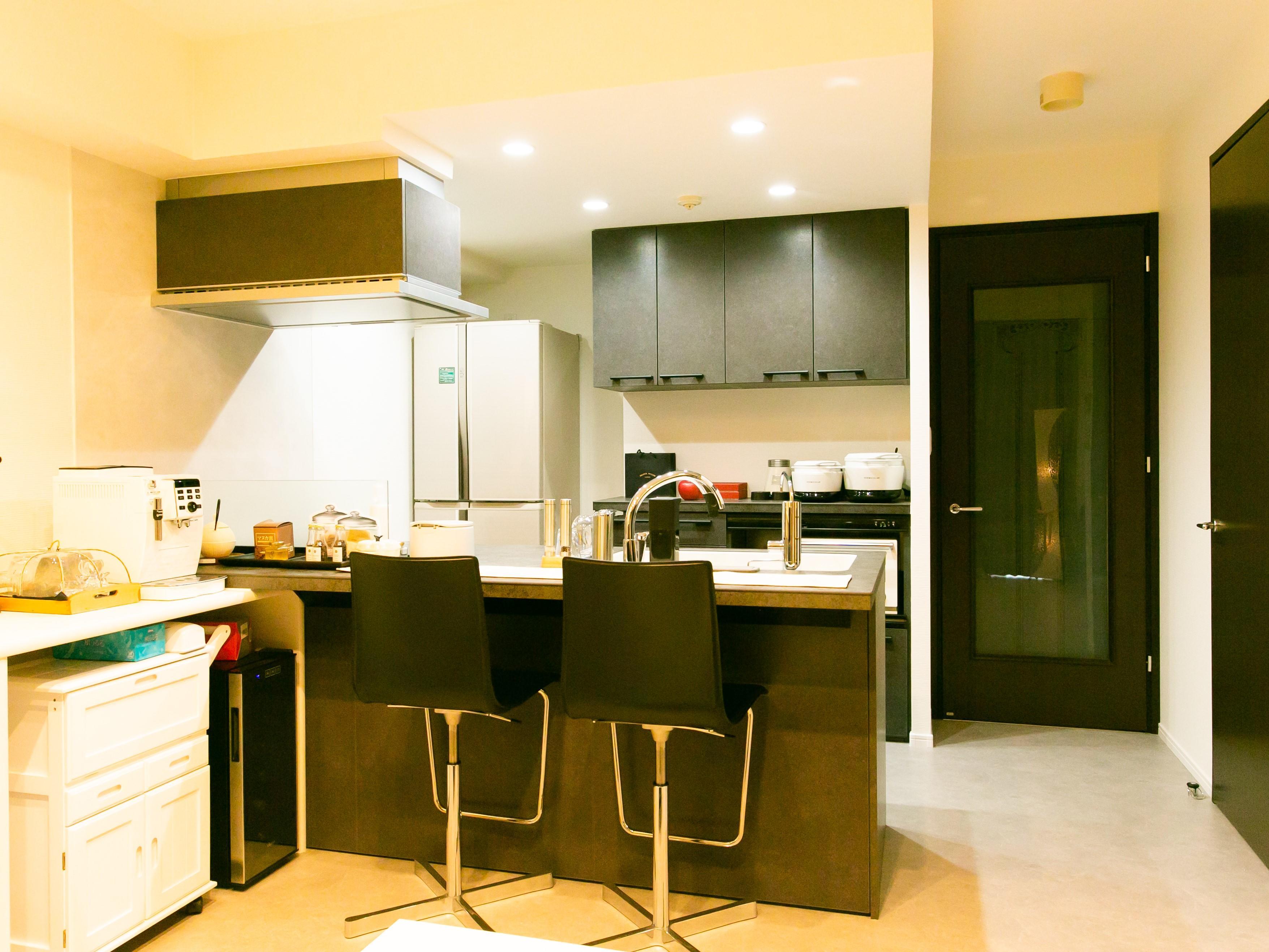 リビング側からキッチンを見たお写真です。ダイニング側の仕様を「テーブルタイプ」を選択し、リビングダイニング側にはカウンターを設置しました。